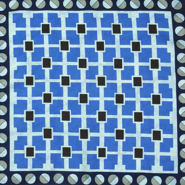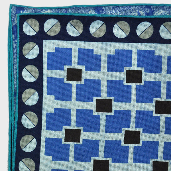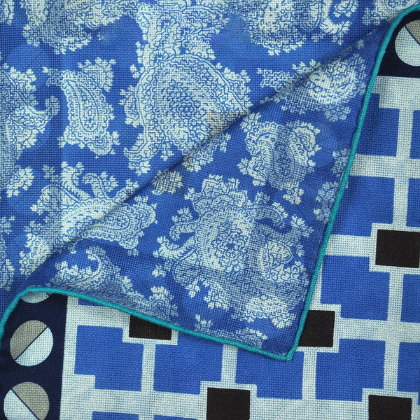 Geometrics & Paisley Reversible Panama Silk Pocket Square in Navy, Blue & Beige