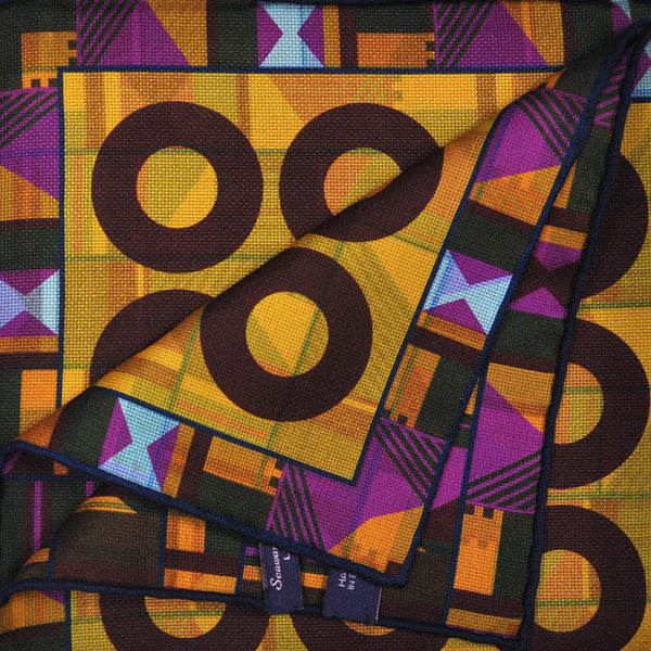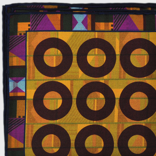 Hoops & Aztec Reversible Panama Silk Pocket Square in Brown & Pink & Ochre
