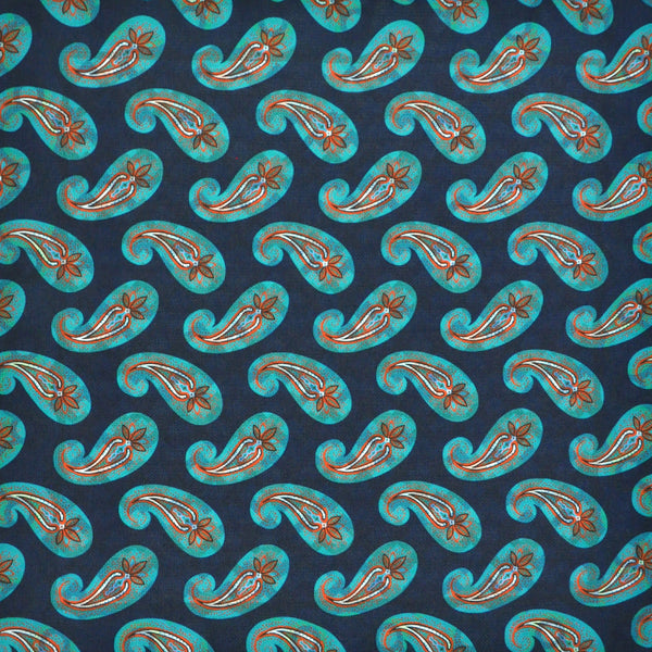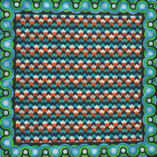 Retro Patterns & Paisley Reversible Panama Silk Pocket Square in Blue & Lime & Orange