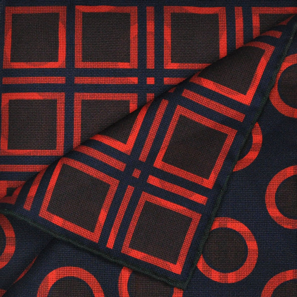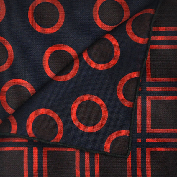 Squares & Hoops Reversible Panama Silk Pocket Square in Navy Blue & Red