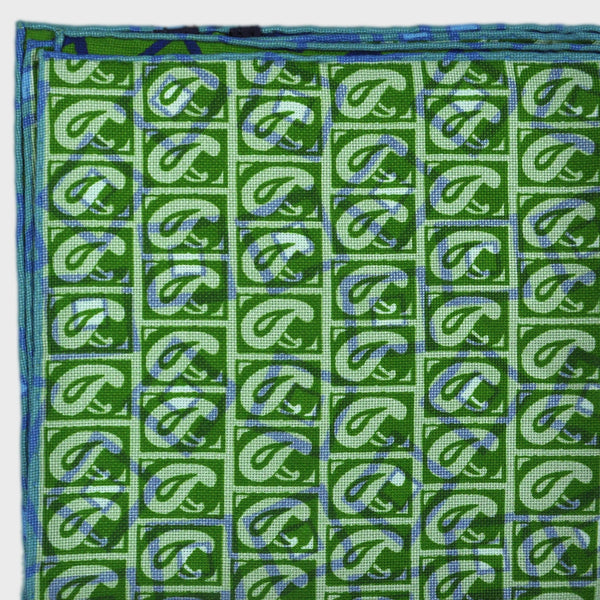 Teardrops & Geo's Reversible Panama Silk Pocket Square Green