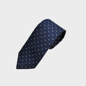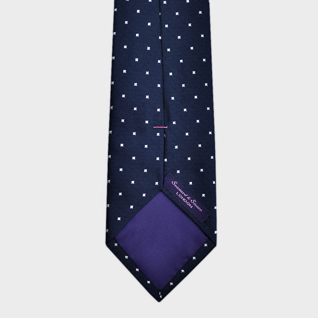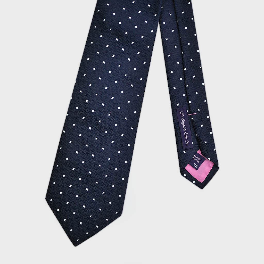 Little Squares on Textured Weave Bottle Neck Silk Tie in Navy
