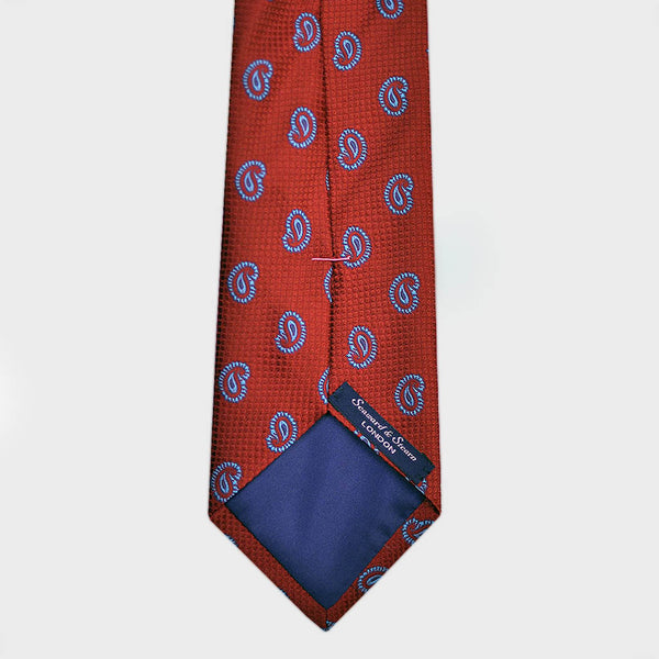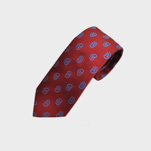 Little Blue Tears on Red Natte Bottle Neck Silk Tie