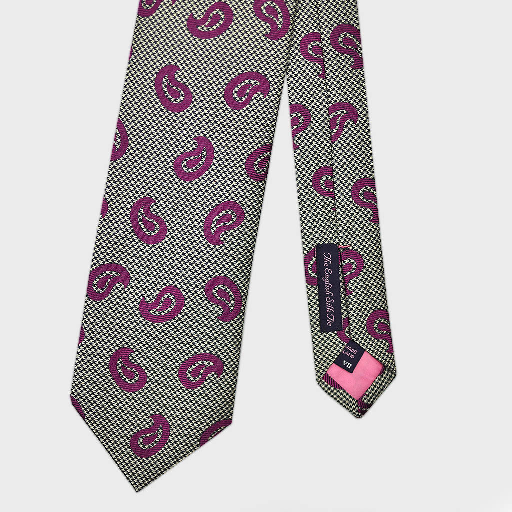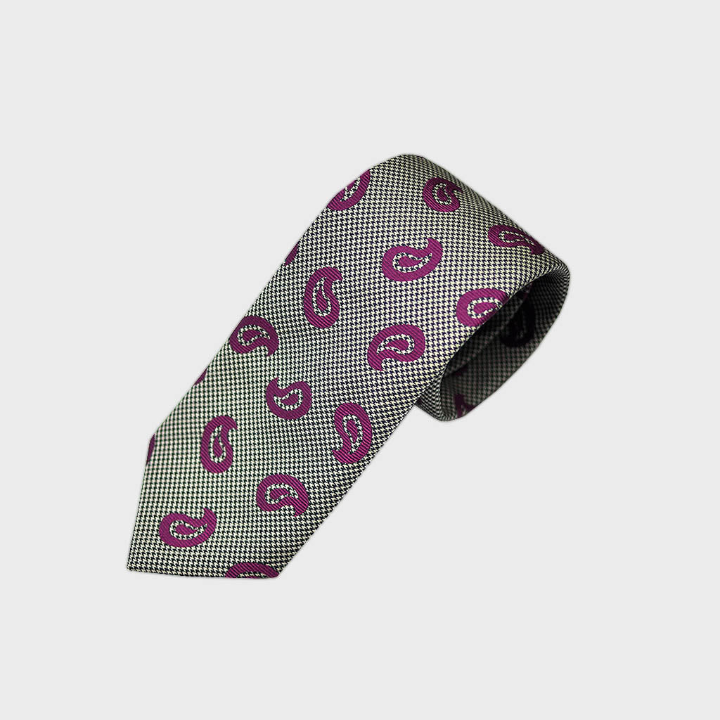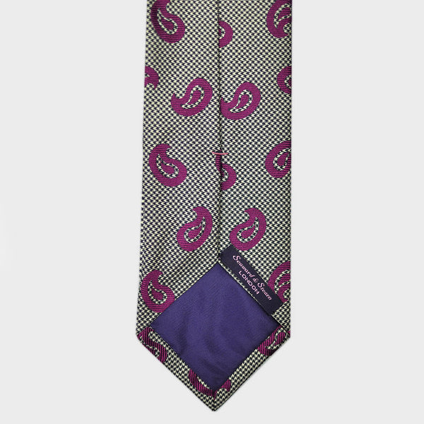Puppy Tooth & Teardrops Bottle Neck Silk Tie in Purple