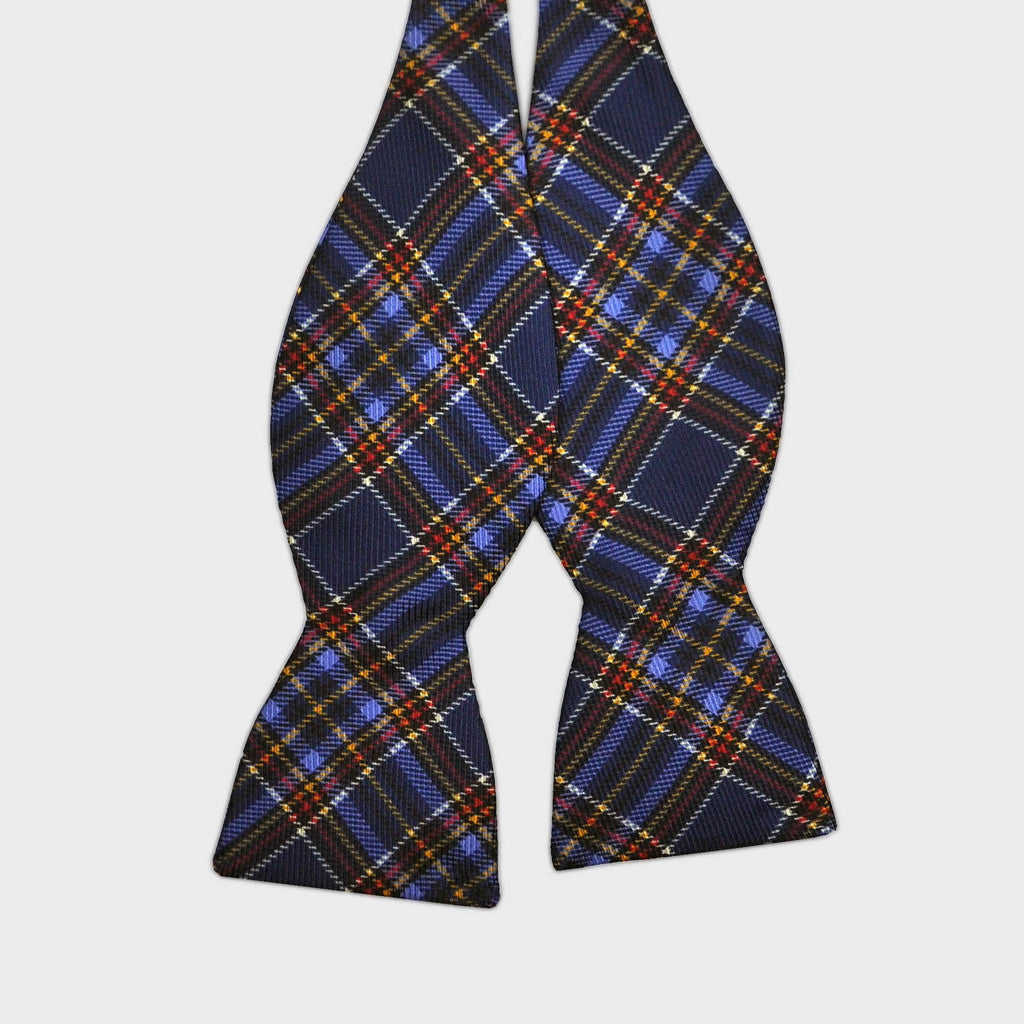 English Woven Silk Plaid Bow Tie in Navy, Blue & Red