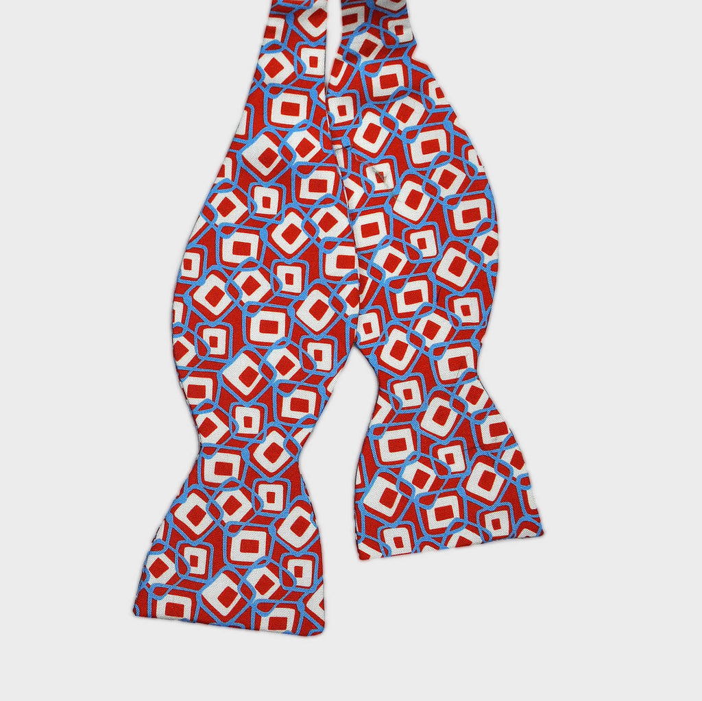 English Printed Silk Geometrics Bow Tie in Red & Blue