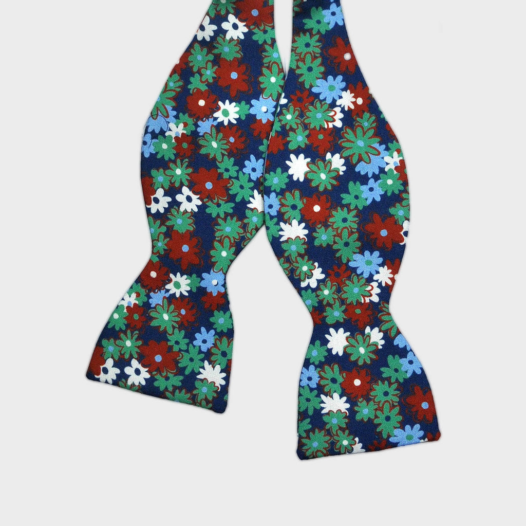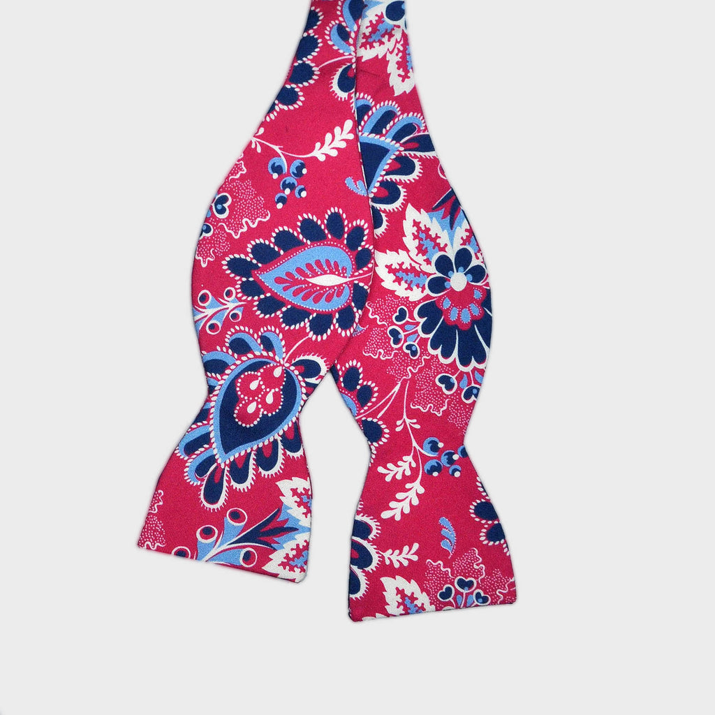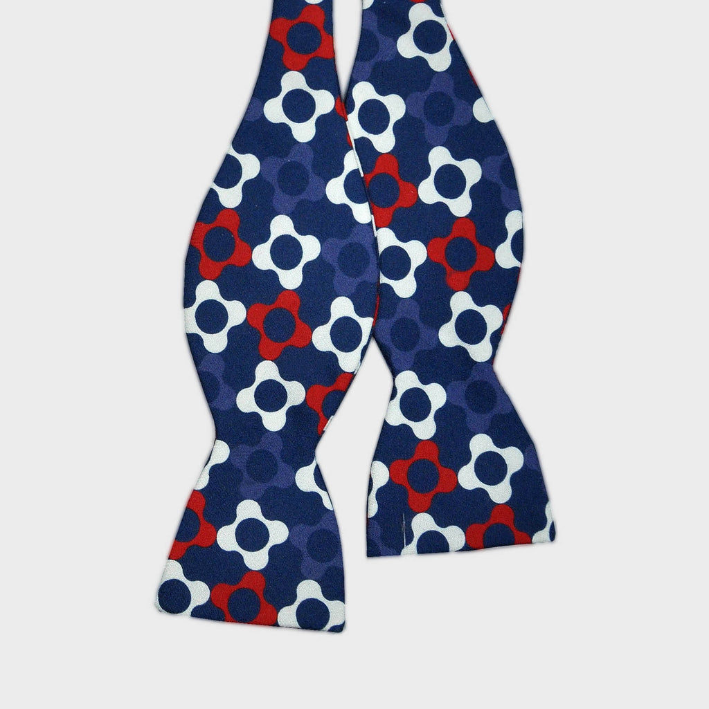 English Printed Silk Flowers Bow Tie in Red, Navy & Blue