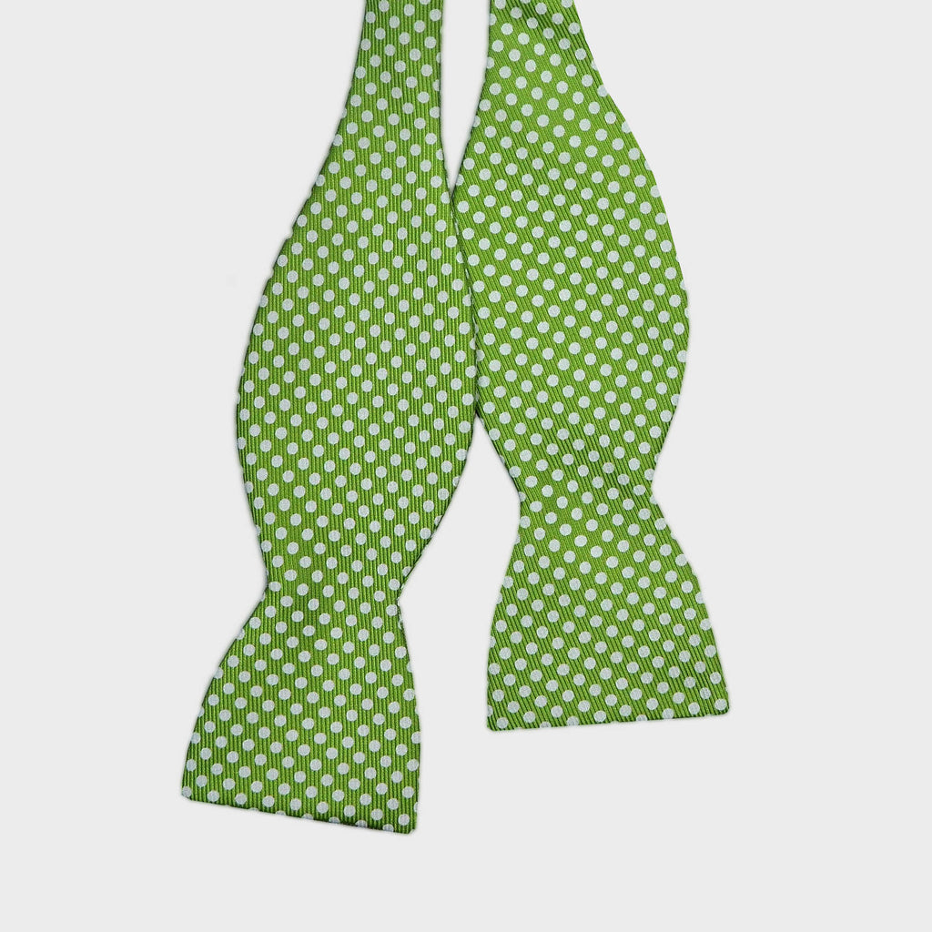 English Printed Silk Polka Dot Bow Tie in Lime