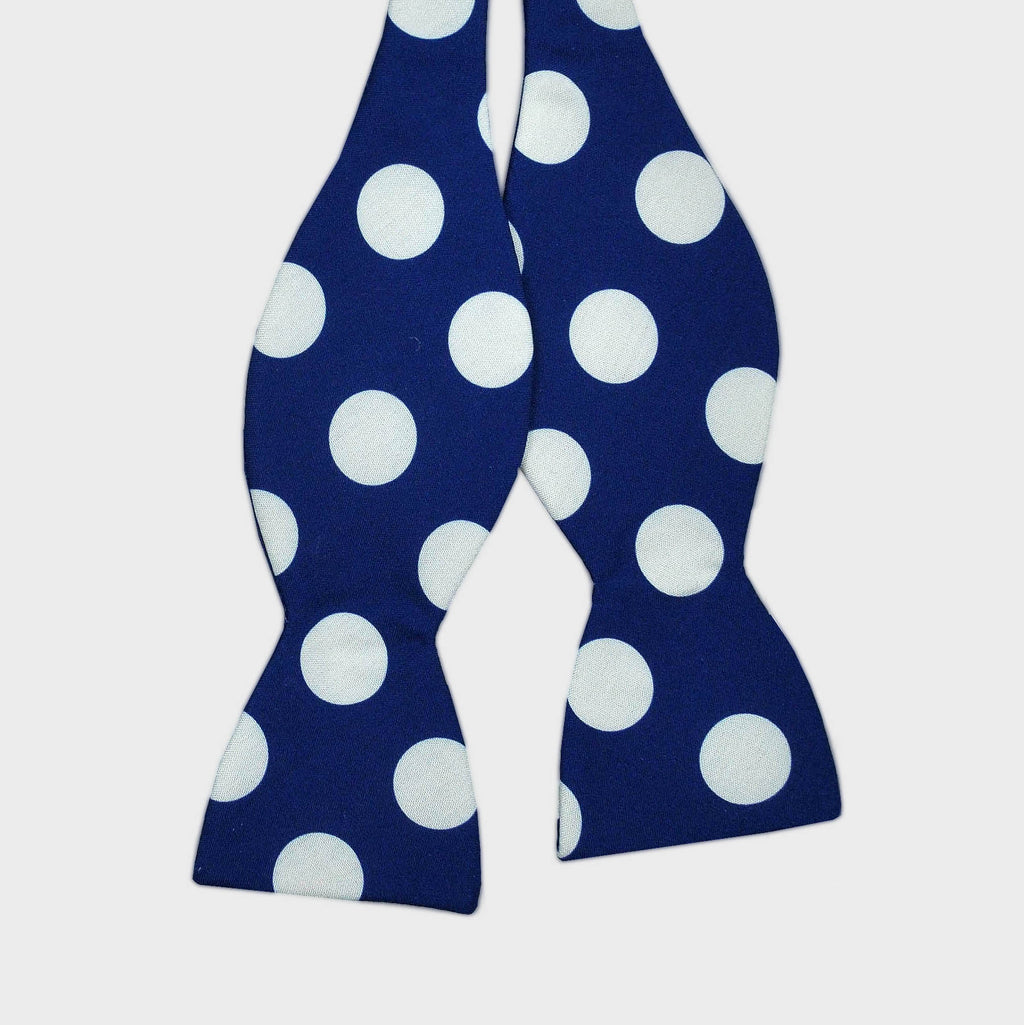 English Printed Silk Big Spot Bow in Navy & White