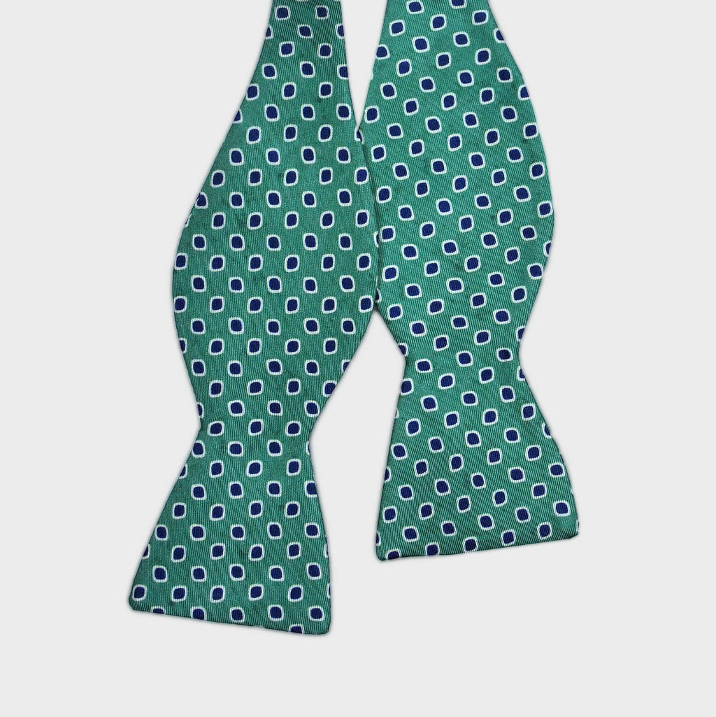 English Printed Silk Dot Repeat Bow Tie in Dark Lime & Navy
