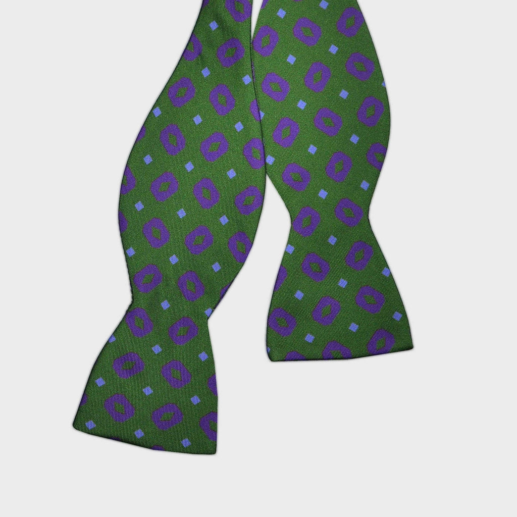 English Printed Silk Dotty Repeat Bow Tie in Purple & Green