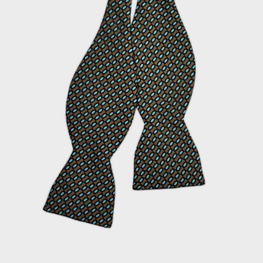 English Printed Silk Little Teardrops Bow Tie in Olive & Blue