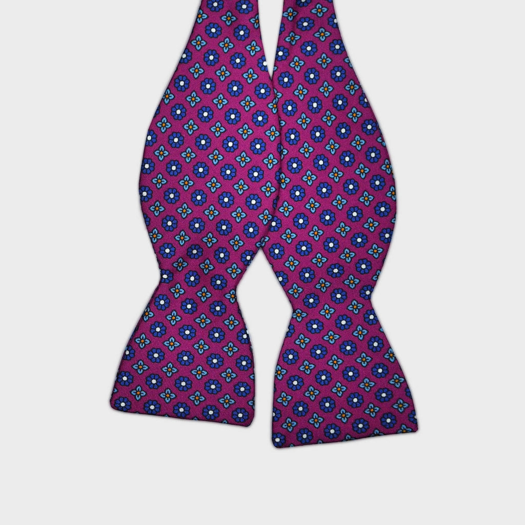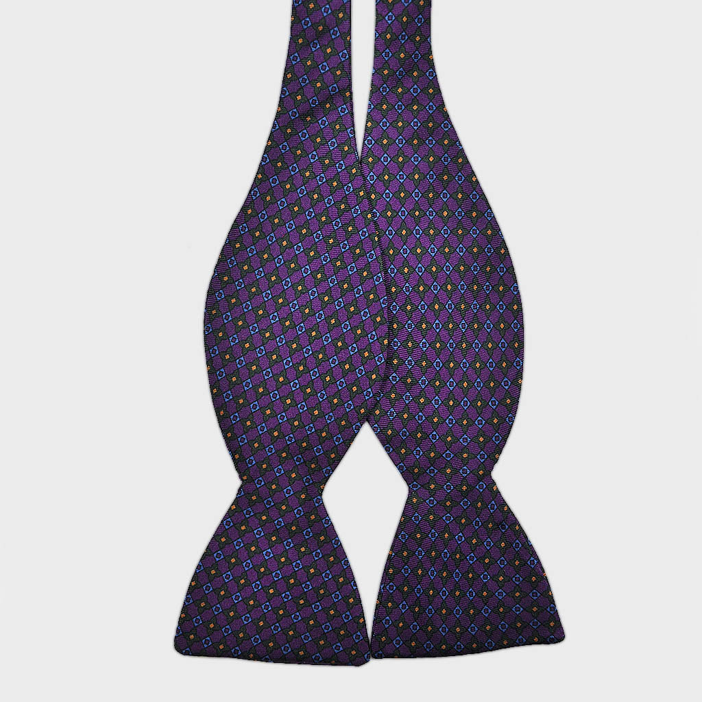 English Printed Silk Little Flowers Repeat Bow Tie in Purple, Navy & Blue