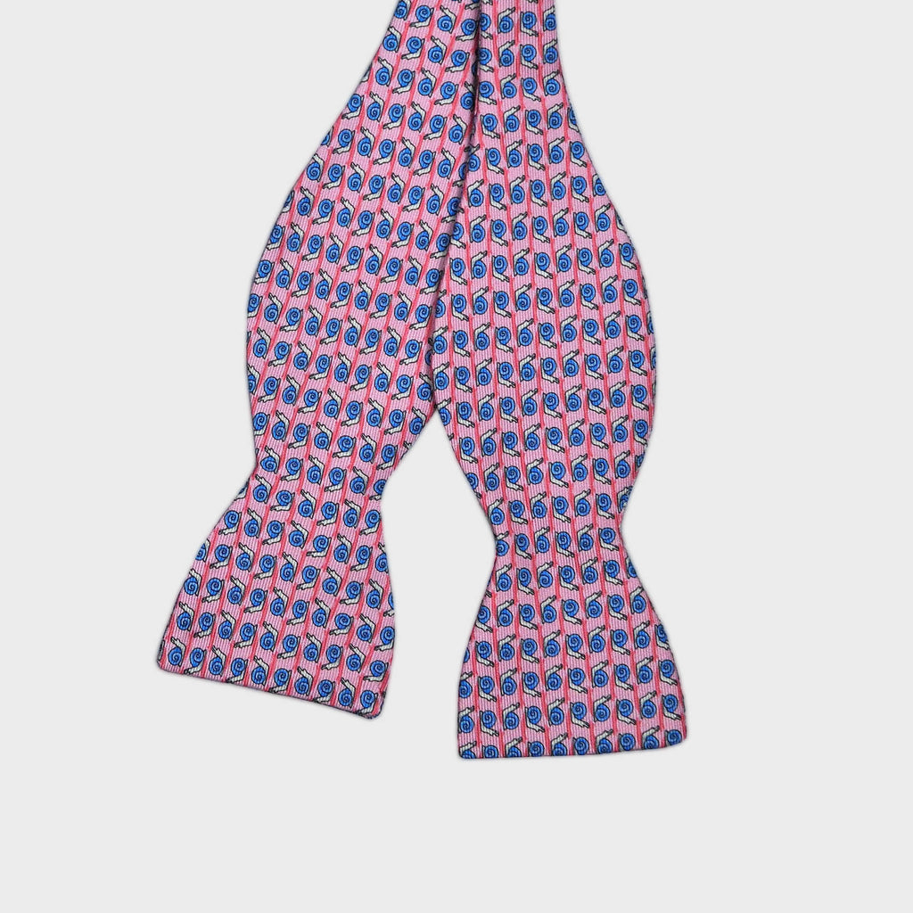 English Printed Silk Little Snail Repeat Bow Tie in Navy & Blue