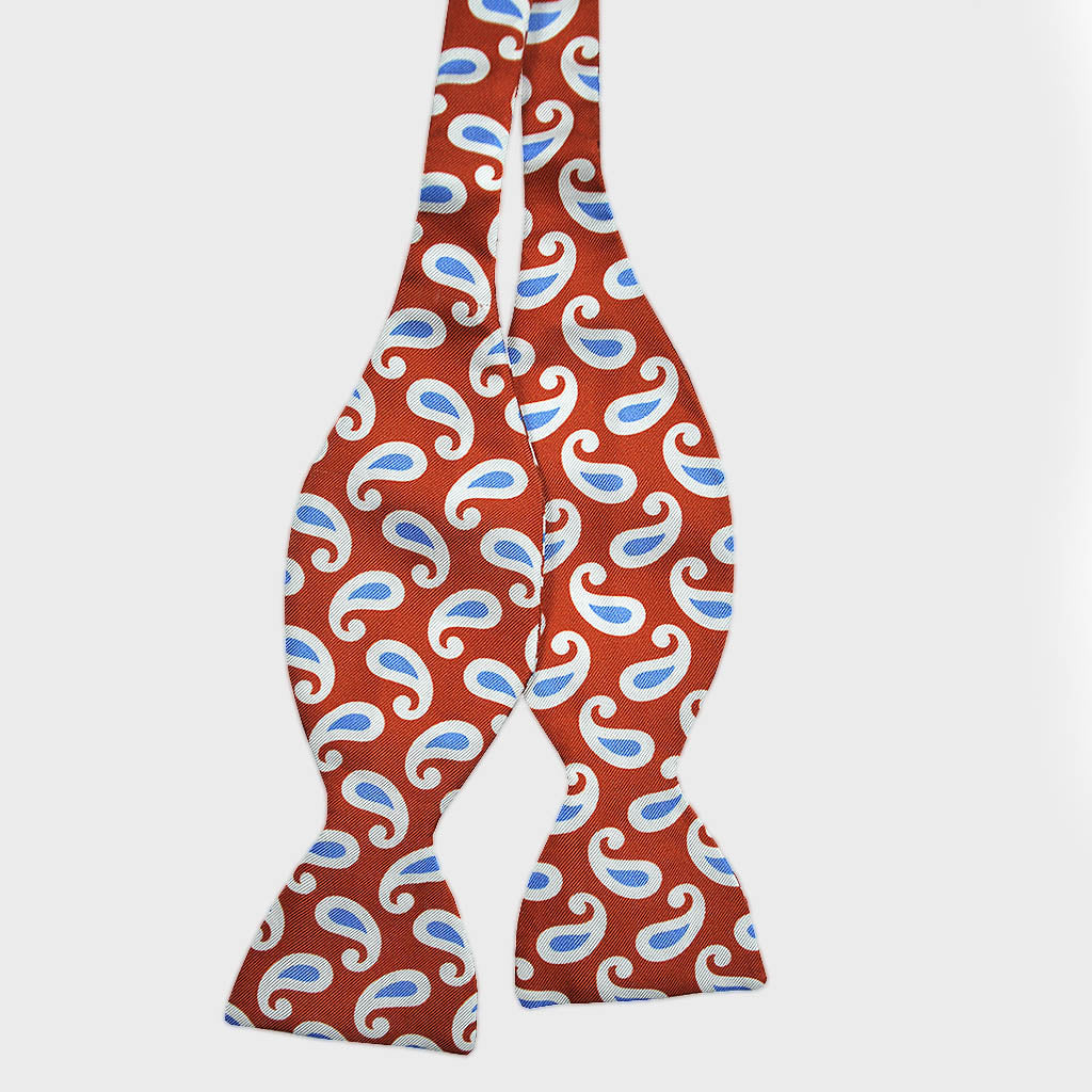 English Printed Silk Paisley Bow Tie in Blue & Orange