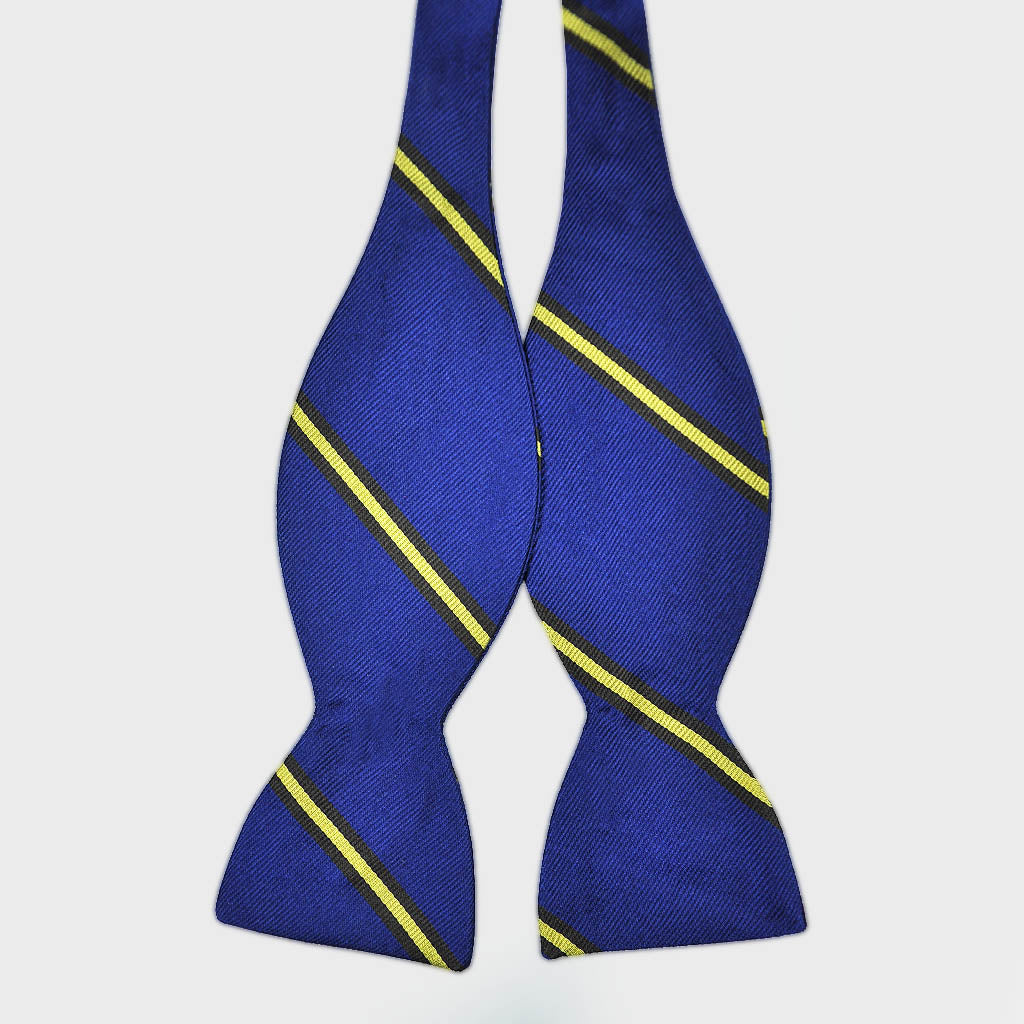 English Silk Reppe Bow Tie with Royal Blue & Yellow Stripes