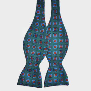 English Printed Silk Medallion Repeat Bow Tie in Pine Green