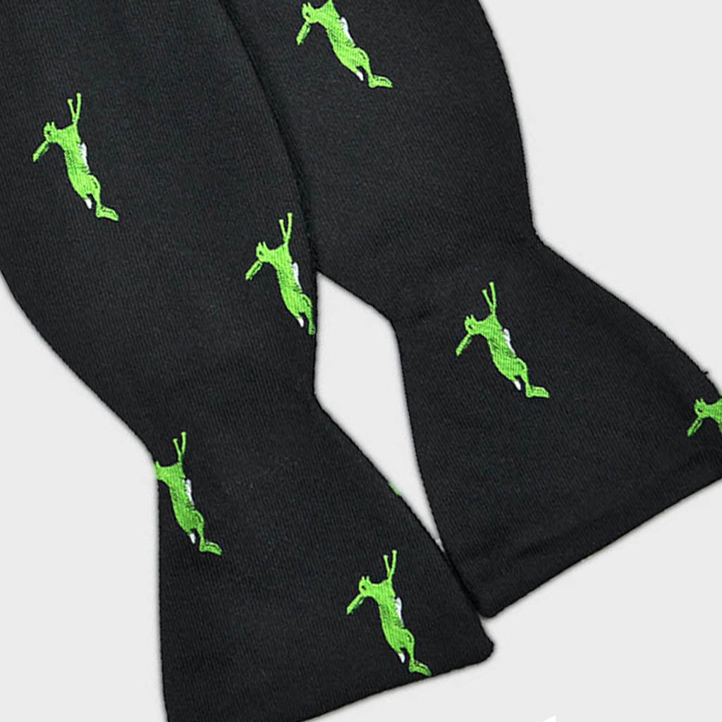 English Woven Silk Jumping Hare Bow Tie Black & Green