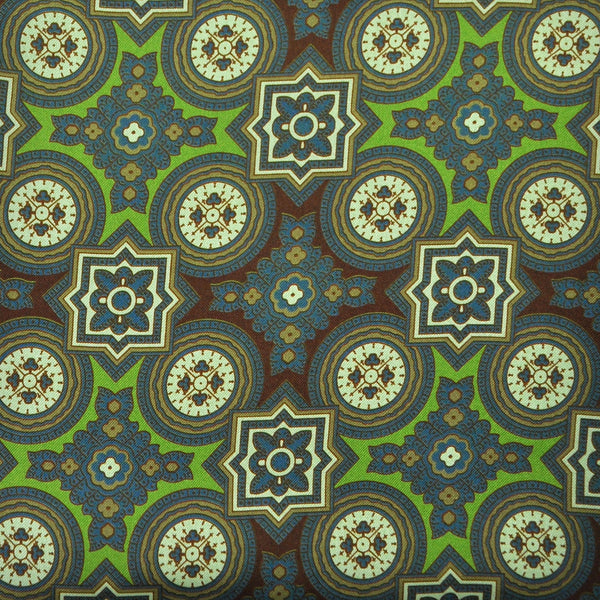 Bold Florets English Silk Pocket Square in Lime, Blue & Brown