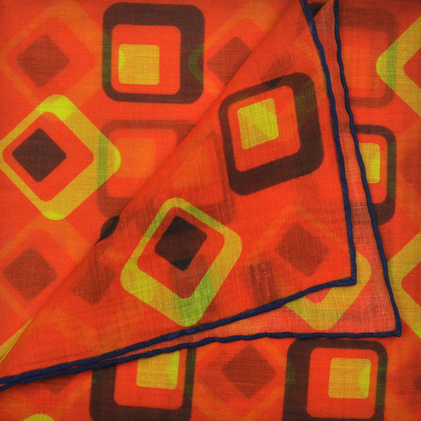 Retro Shapes Cotton & Cashmere Pocket Square in Orange & Yellow