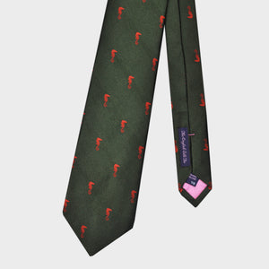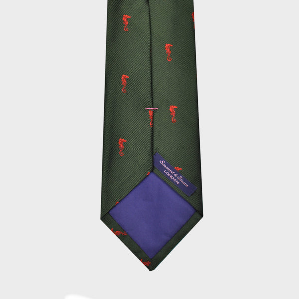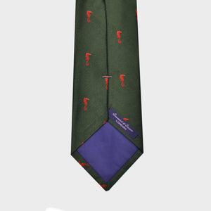 English Woven Silk Orange Seahorse Tie in Green