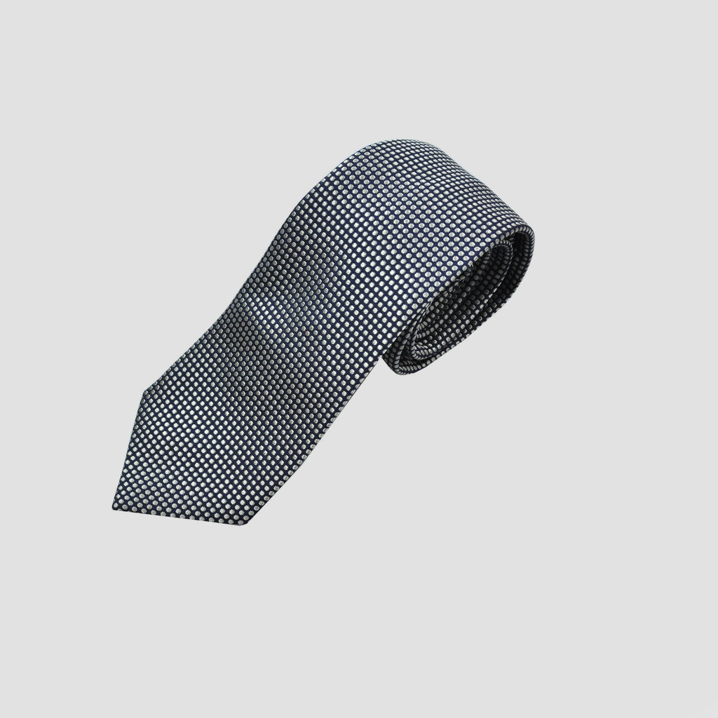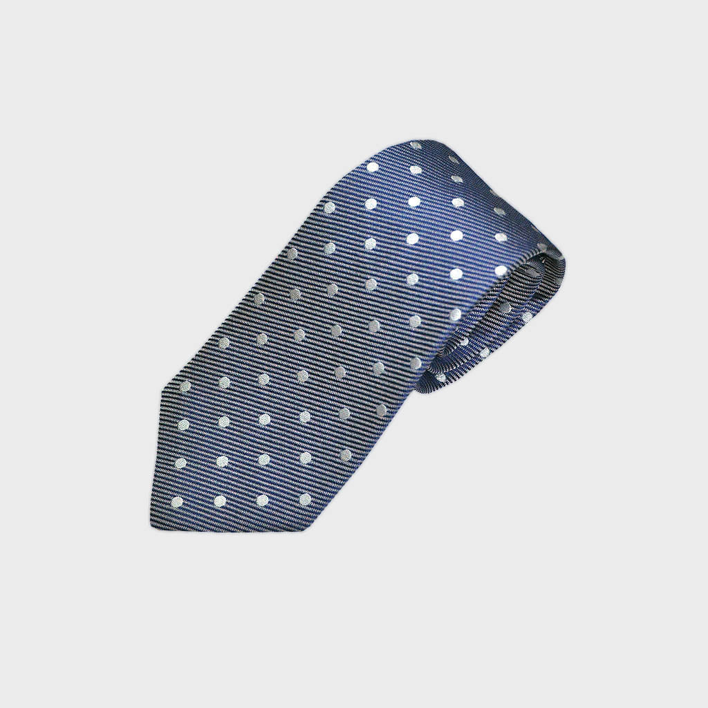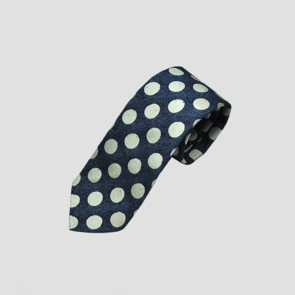 Woven Dots on Tussah Silk Tie in Navy Blue