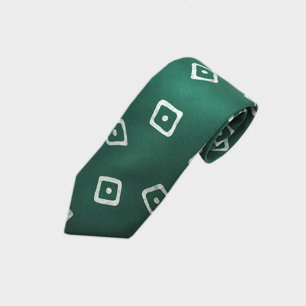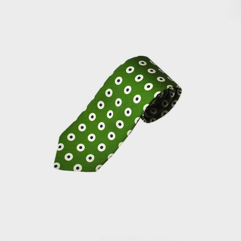 Hoops & Dots Silk & Linen Tie in Lawn Green & Navy