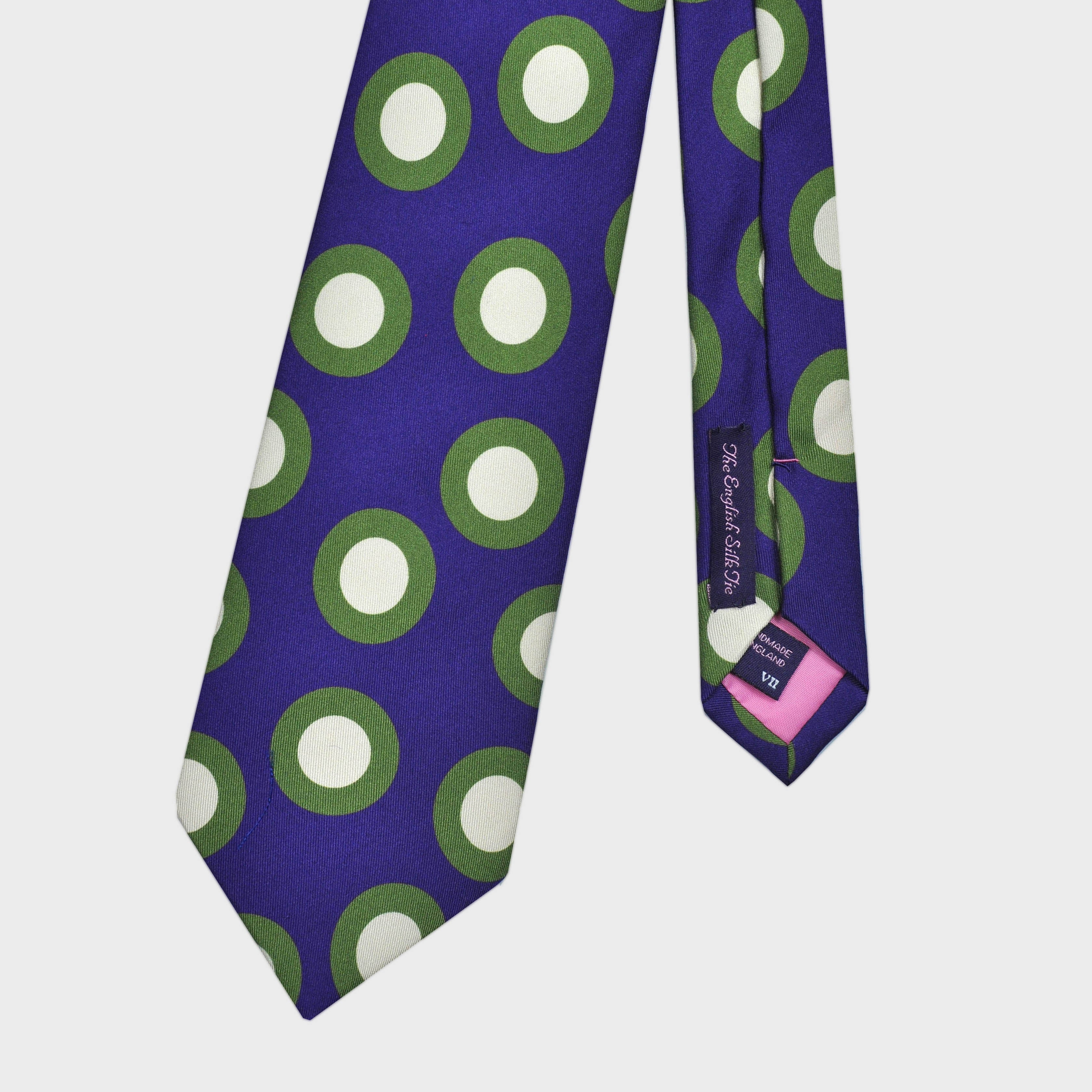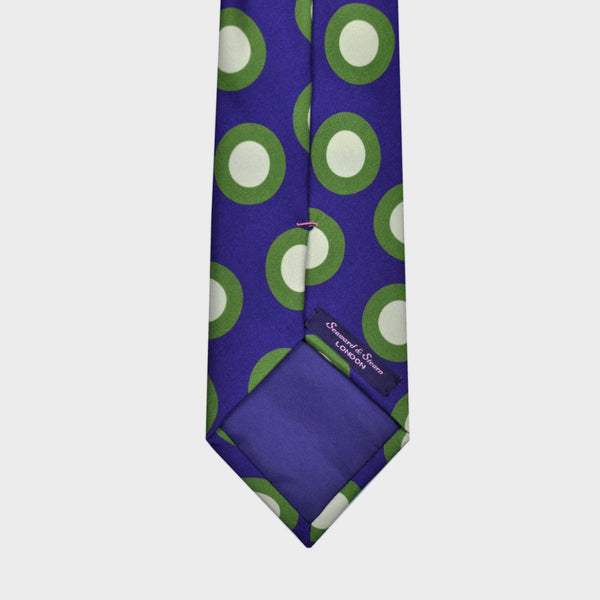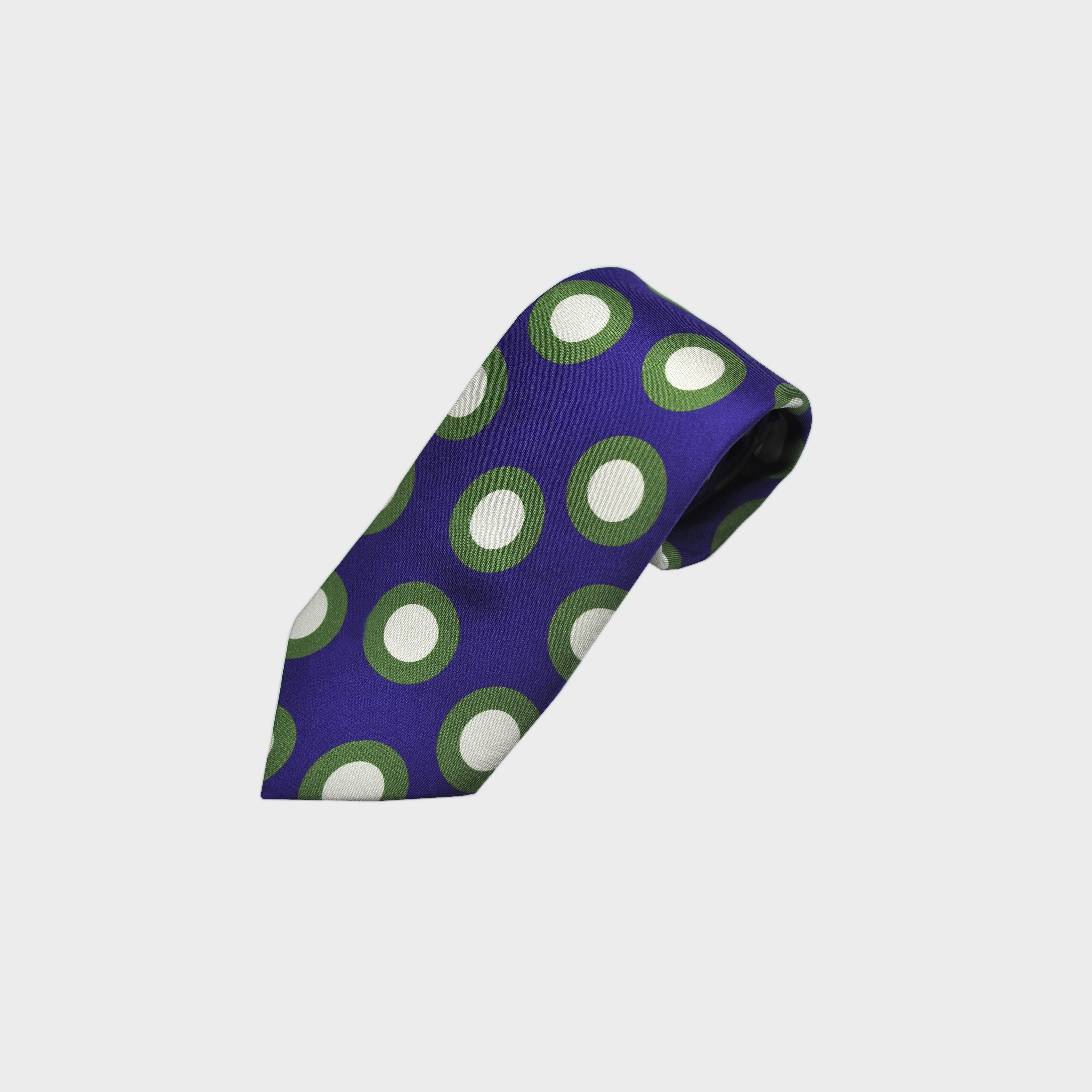 Big Hoops Dusty Silk Tie in Indigo, Lime Green & White