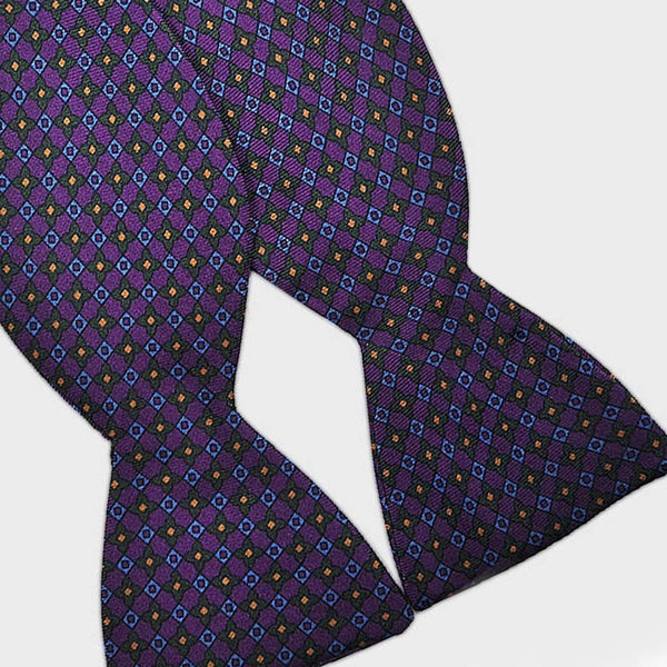 English Printed Silk Dotty Repeat Bow Tie in Purple & Green