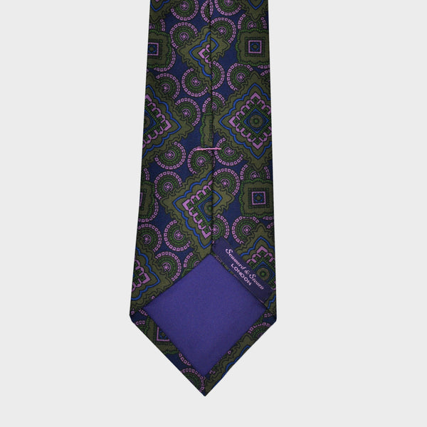 Classic Medallion Silk Tie in Blue & Green & Pink