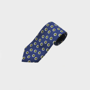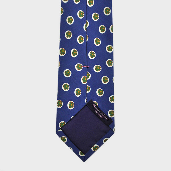 This tie has a soft and dusty texture, like an English Madder, which makes the colours softer while still making a cool summer statement.