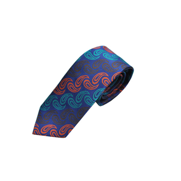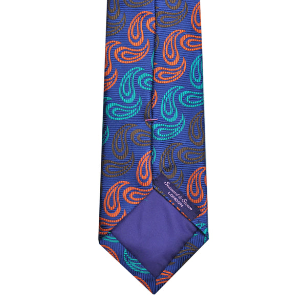 Teardrop Reppe Silk Tie in Blue, Teal, Ochre & Brown