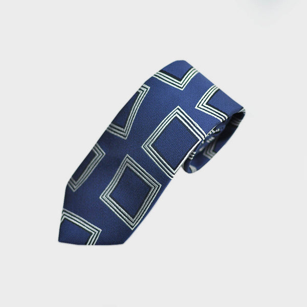 Big Dapper Squares Bottle Neck Silk Tie in Blue