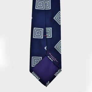 Dapper Squares Bottle Neck Silk Tie in Navy