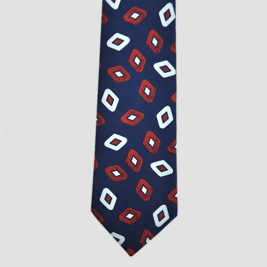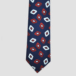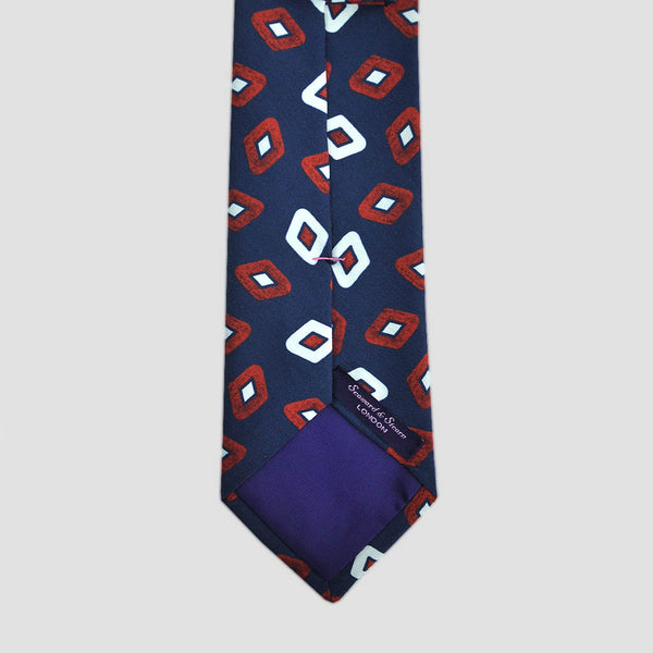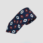 English Silk Falling Diamonds Tie in Navy, Claret & White