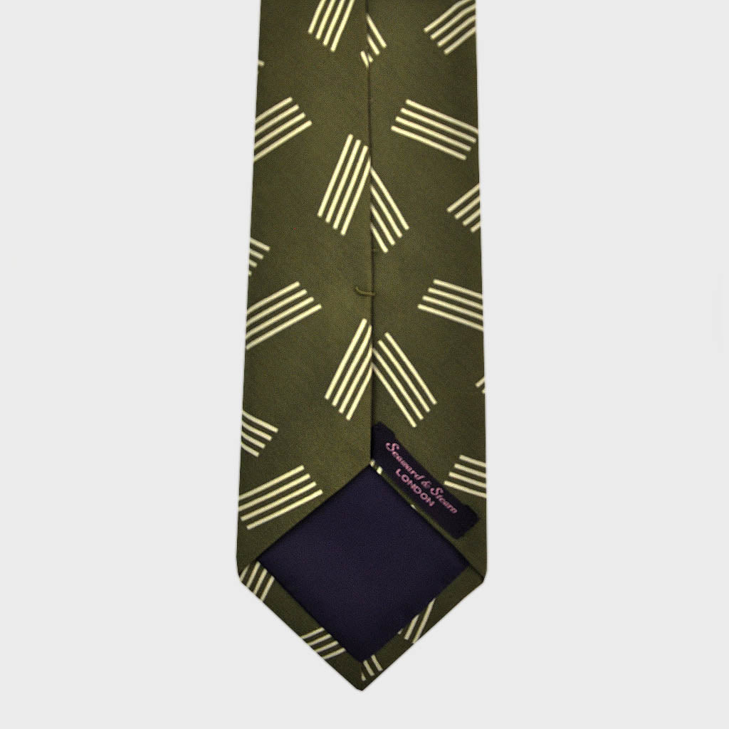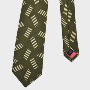 This tie has a soft and dusty texture, like an English Madder, which makes the colours softer while still making a cool summer statement.