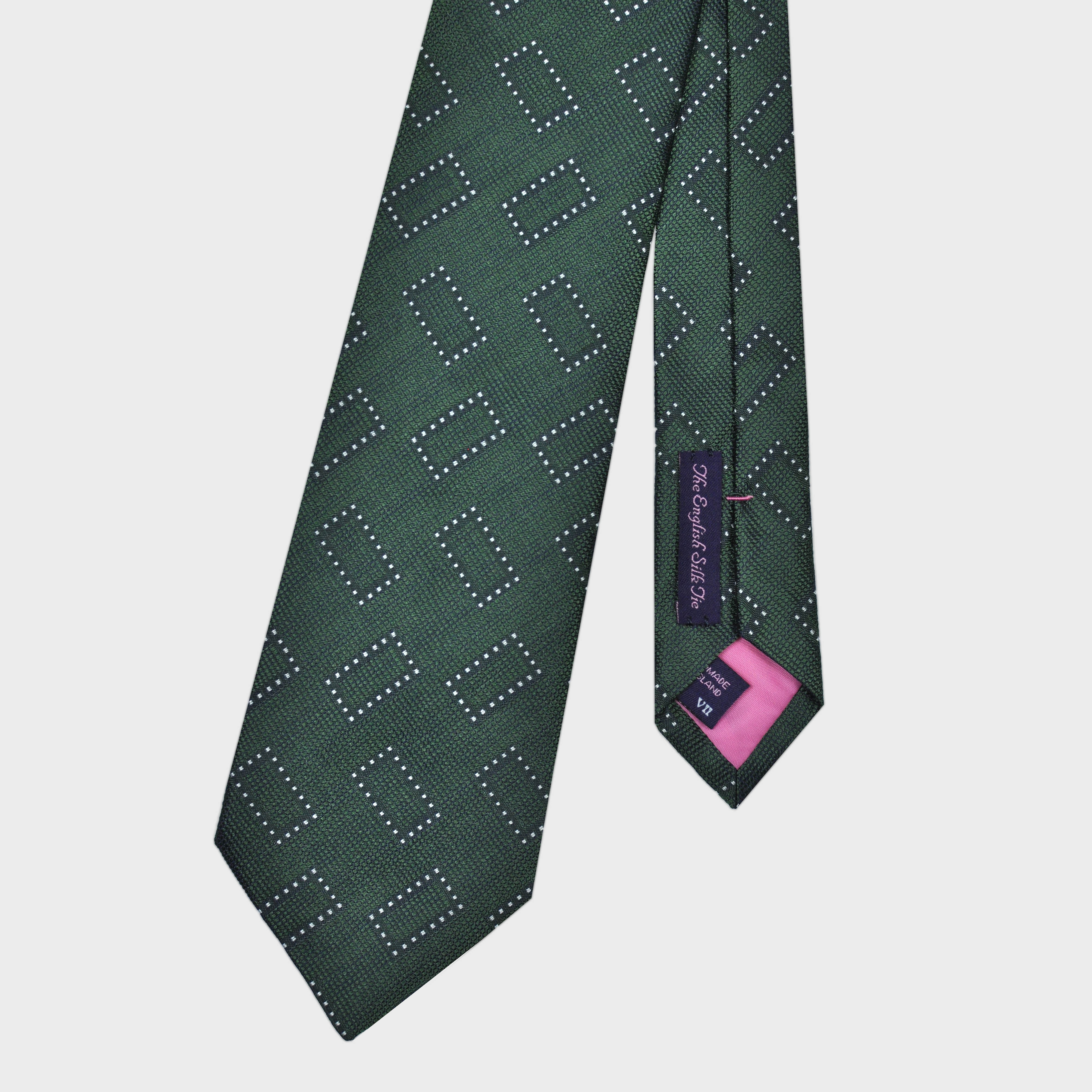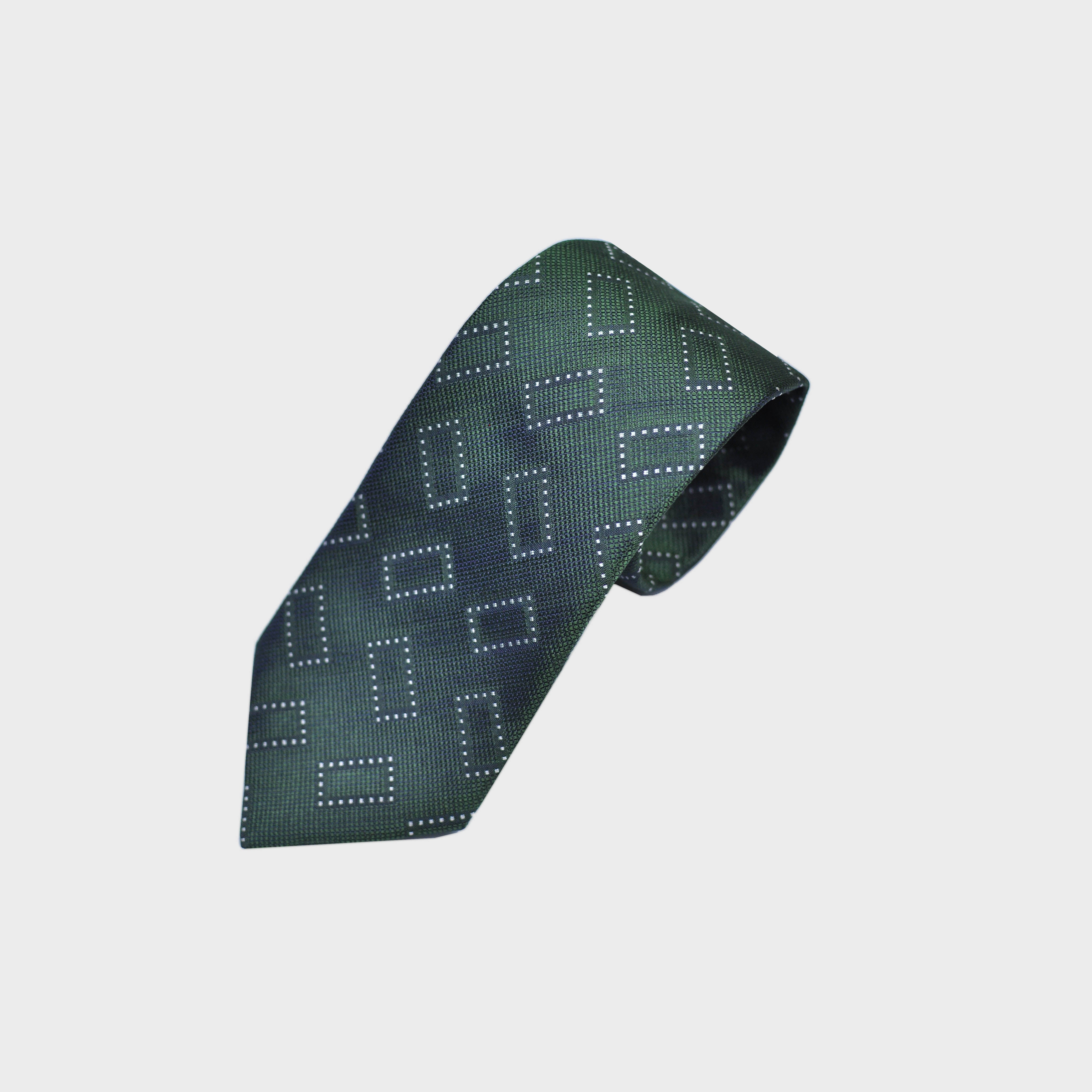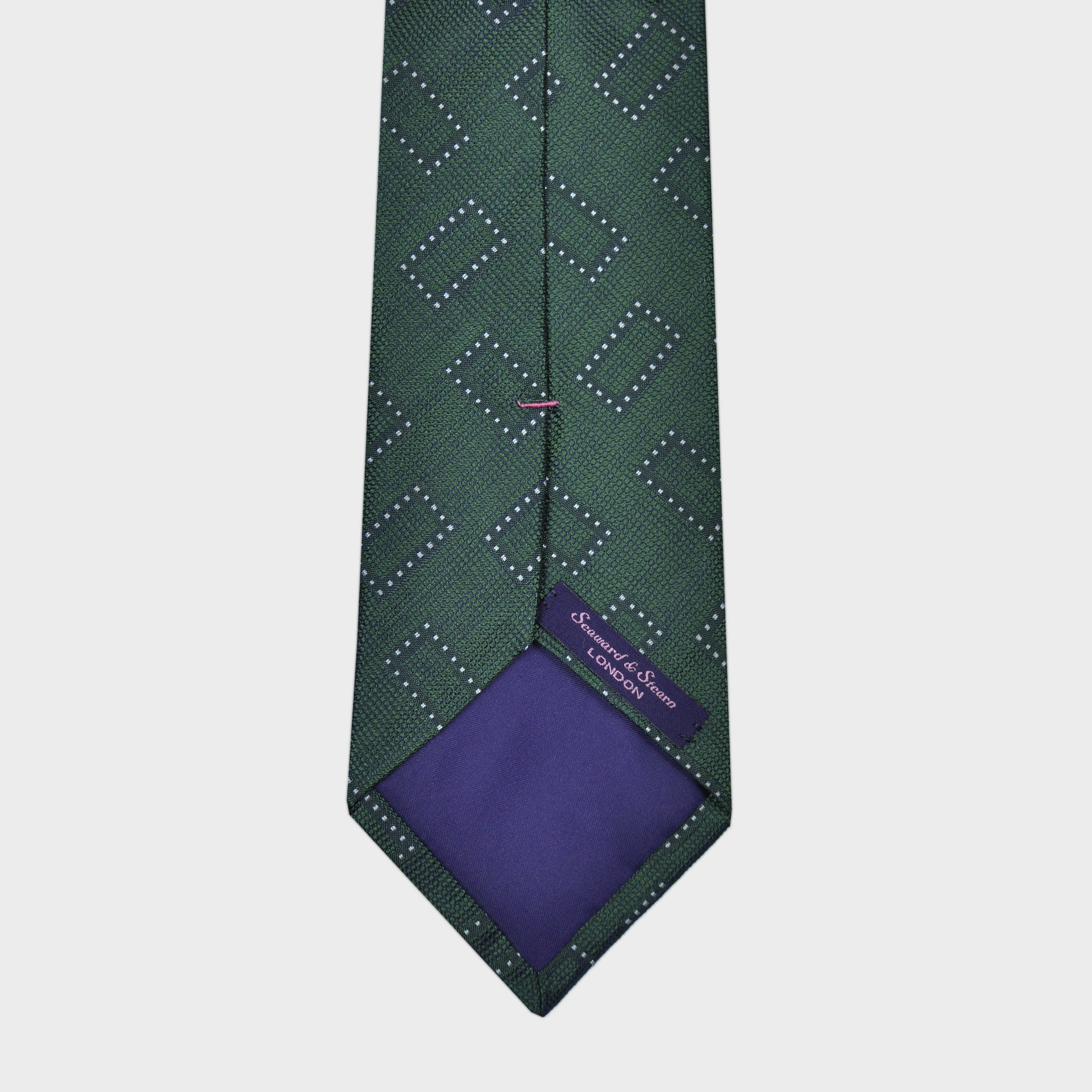 Little Rectangles on a Natte Woven Silk Tie in Green