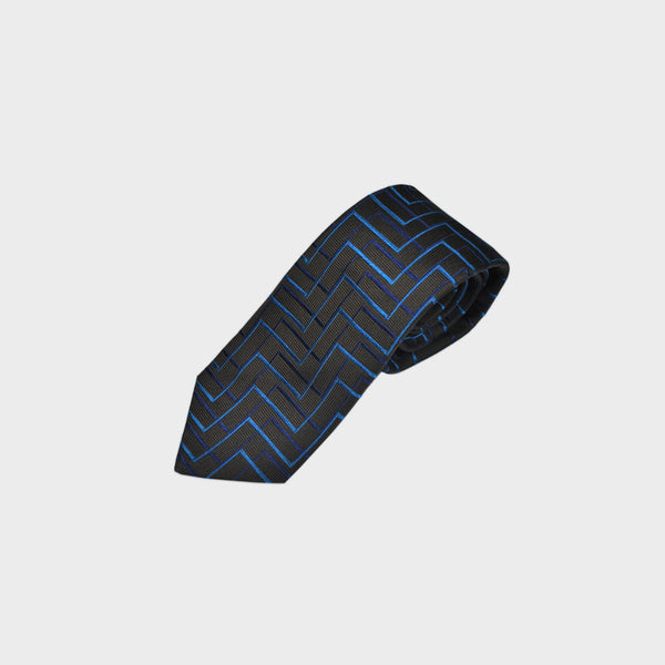 Zig Zag Lines in Blues on Brown Woven Silk Tie