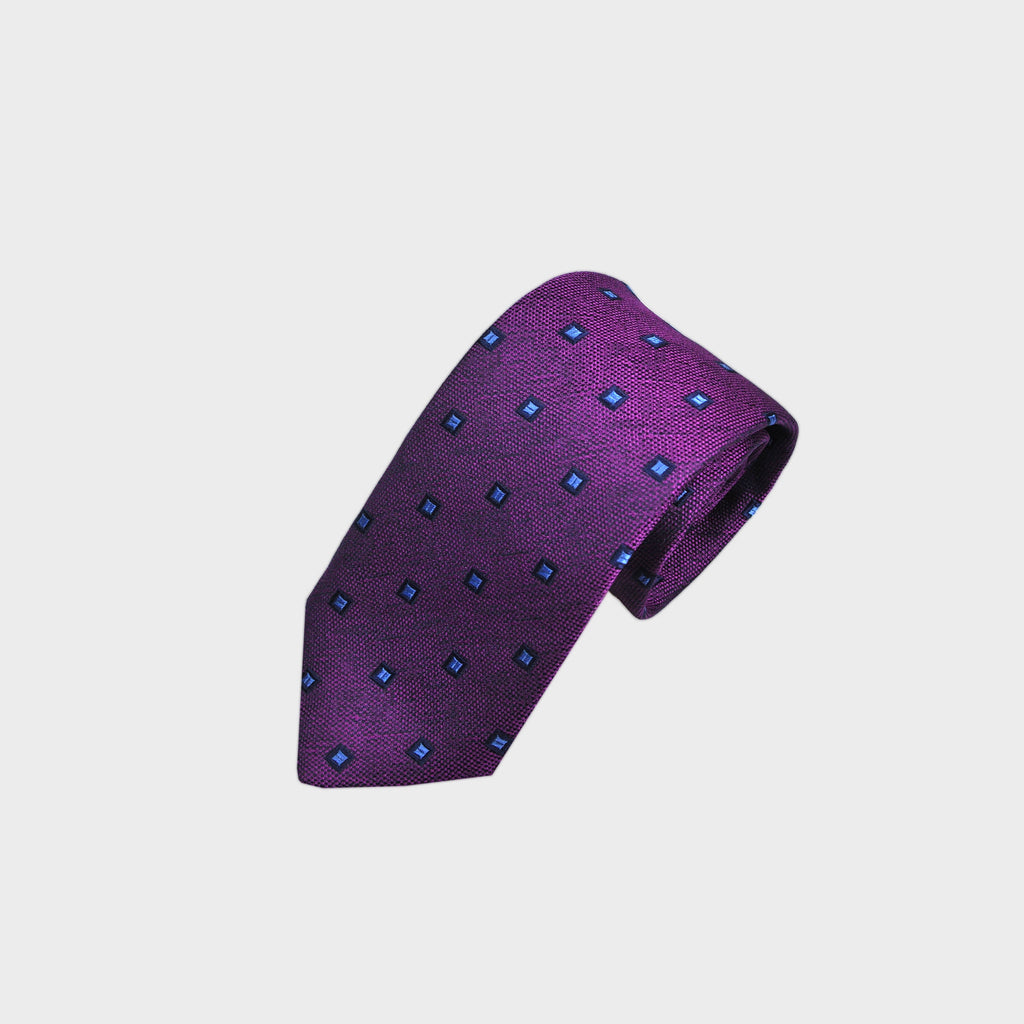Little Repeat Blue Woven Squares on a Natte Silk Tie in Purple