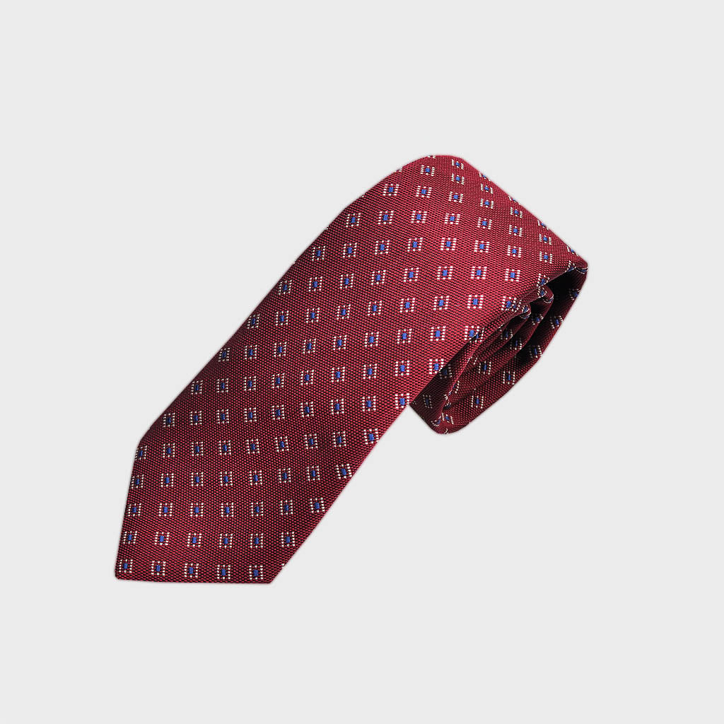 Woven Geometric Squares on a Natte Silk Tie in Navy & White