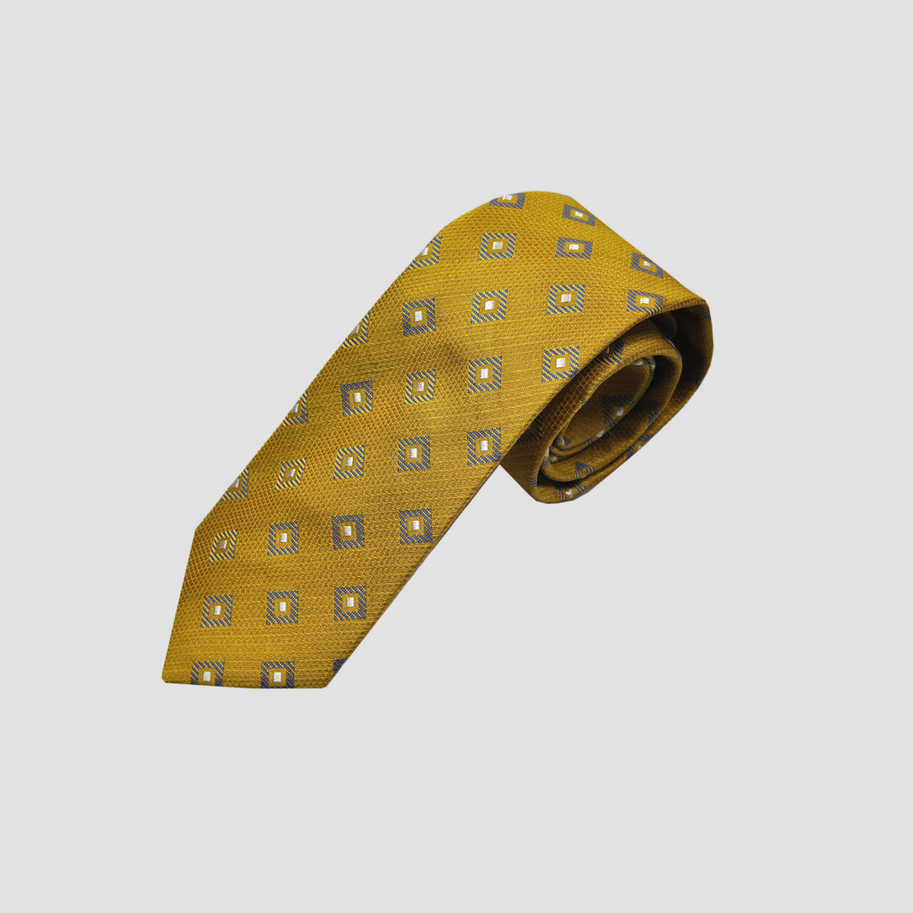 Little Repeat Geometric Squares Woven Silk Tie in Navy & Silver