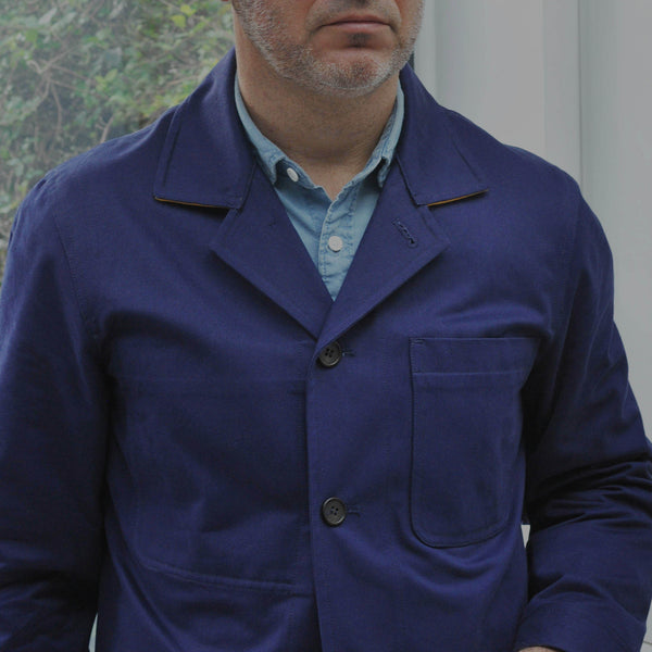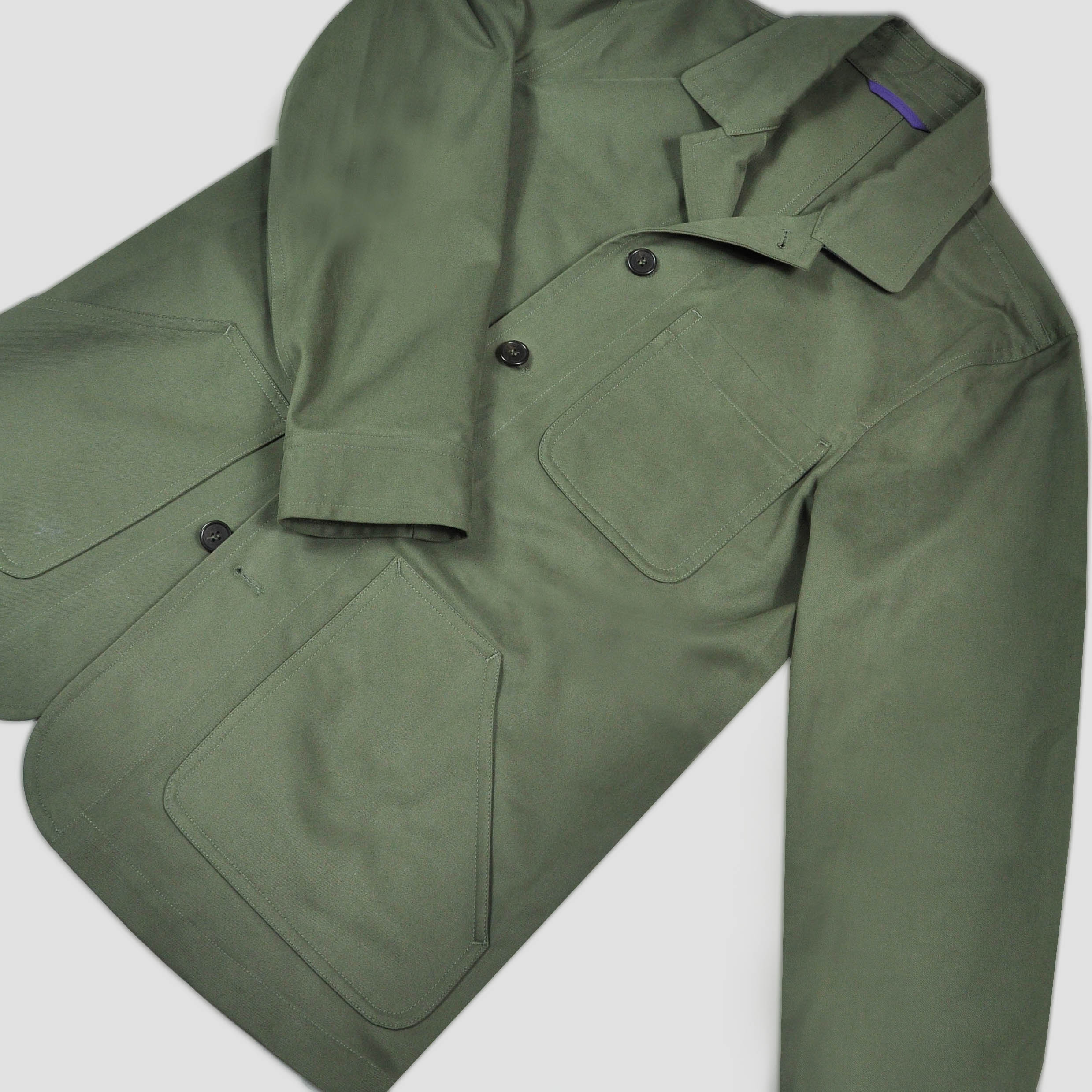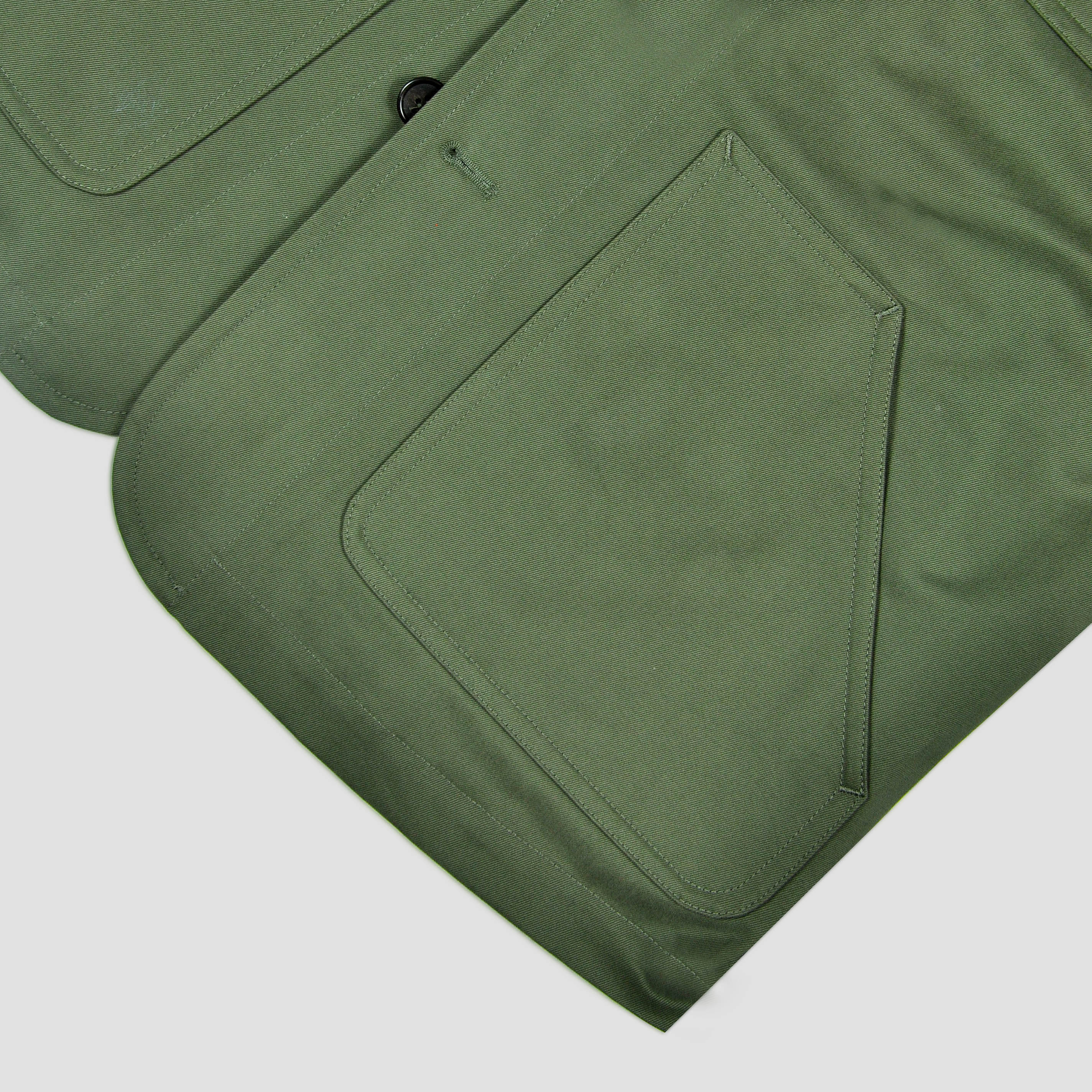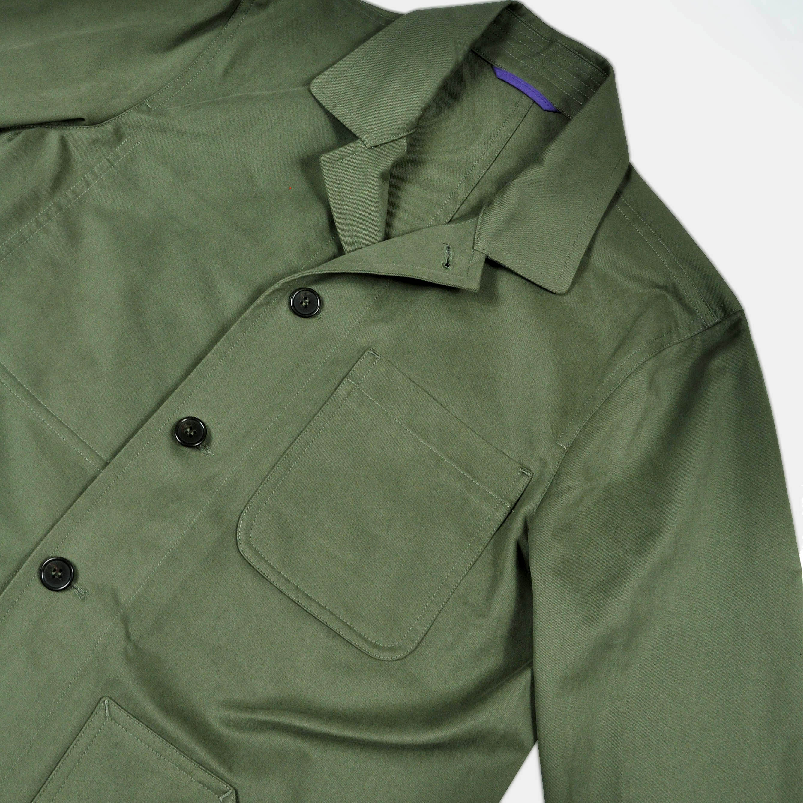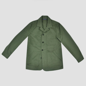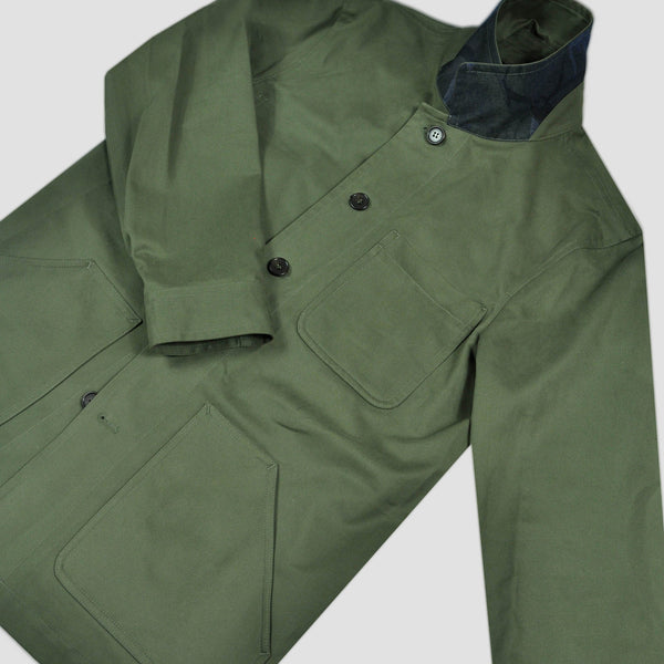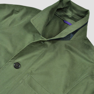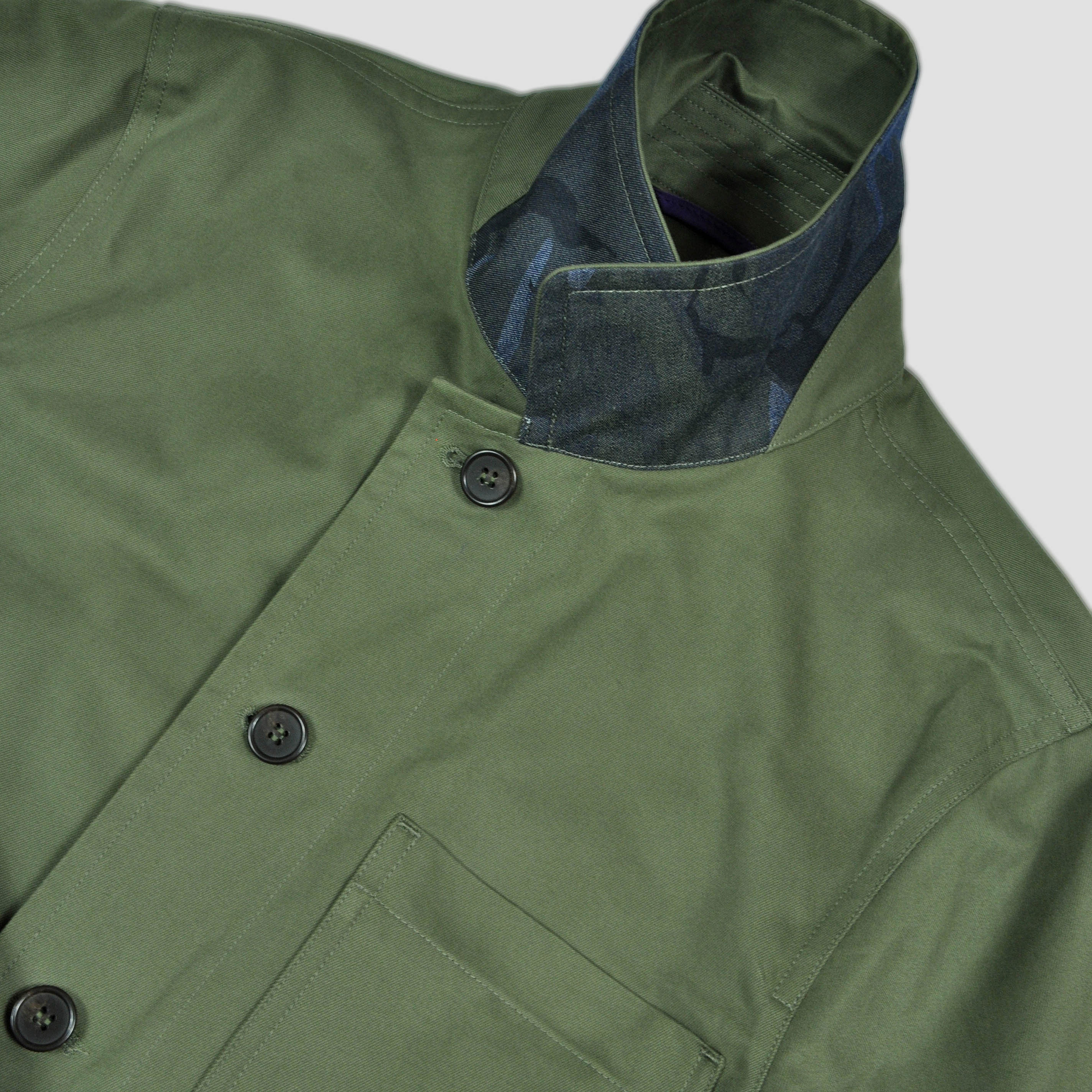 Heavy Cotton Worker Jacket in Khaki Green with Blue (under) Collar