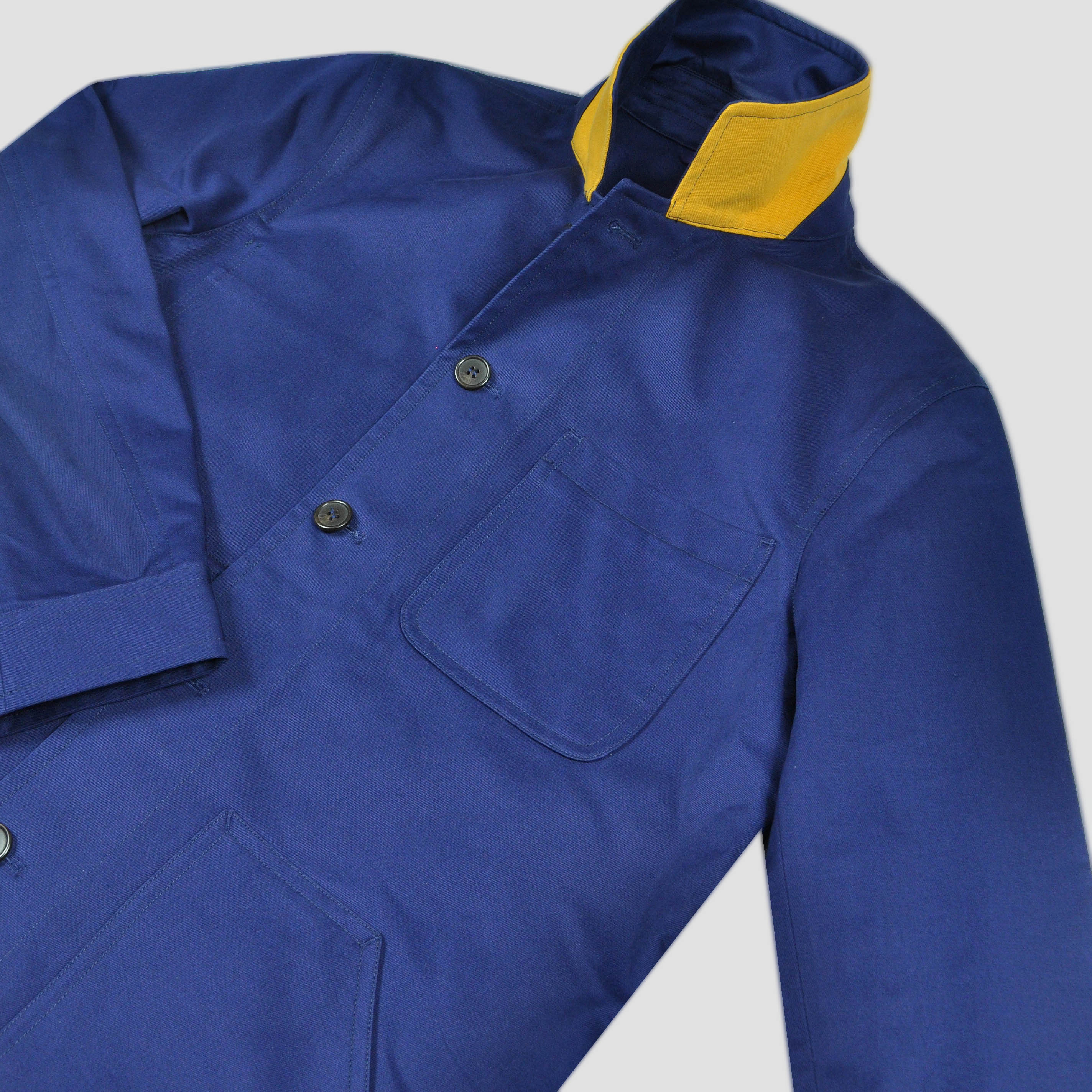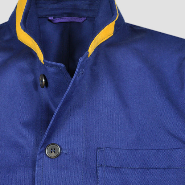Heavy Cotton Worker Jacket in Royal Blue with Mustard (under) Collar