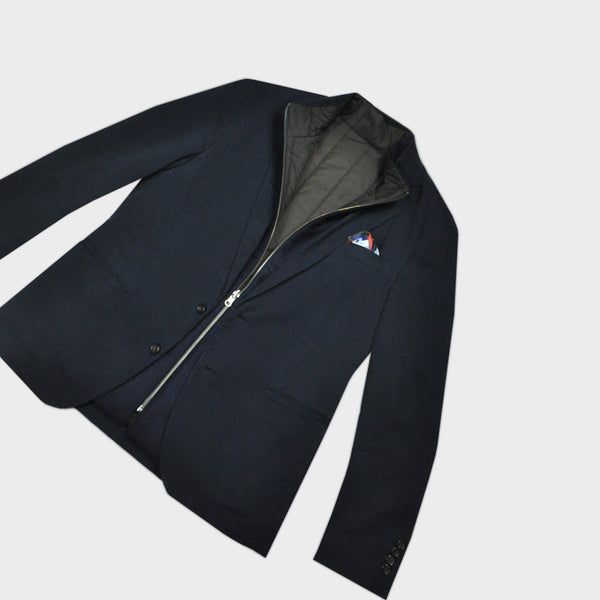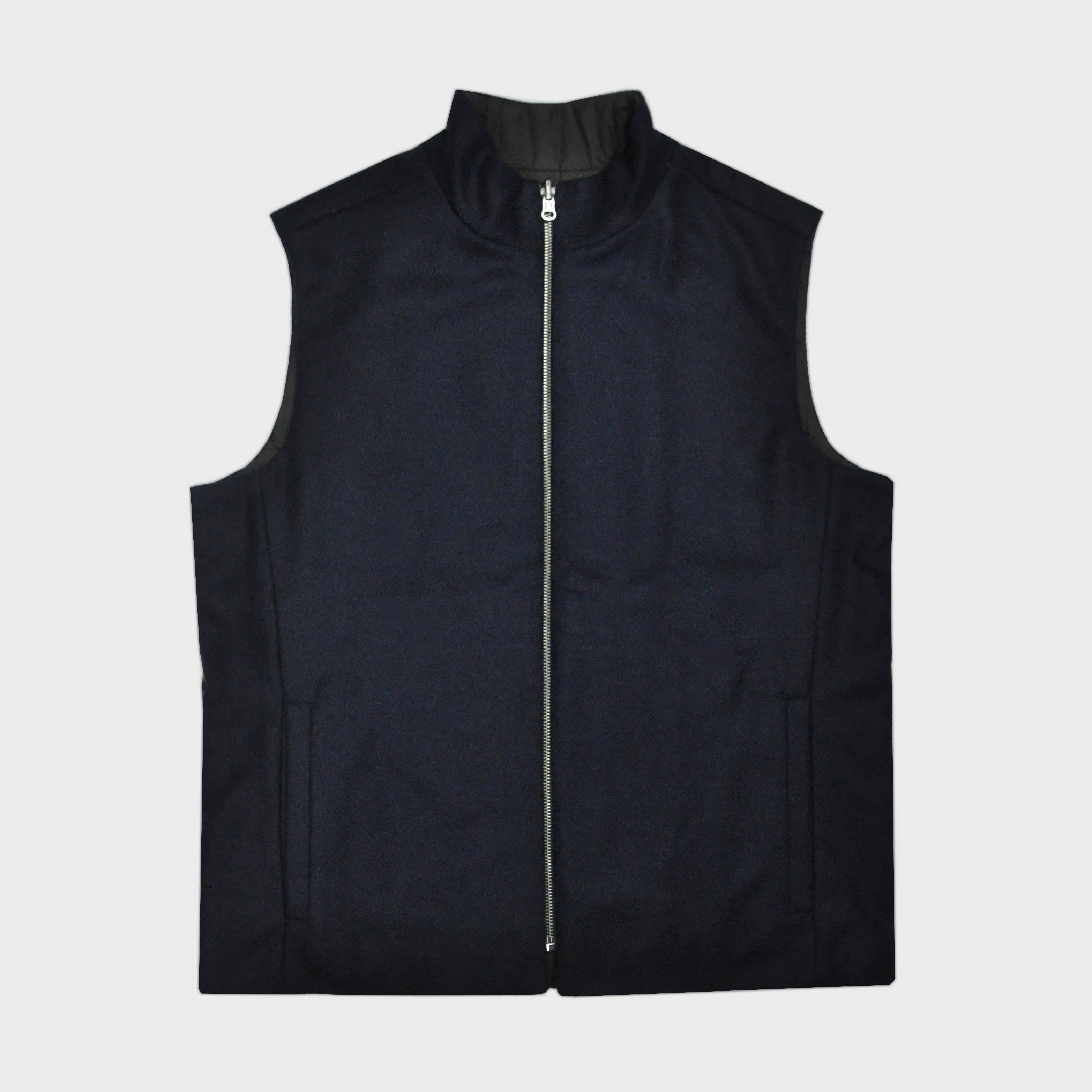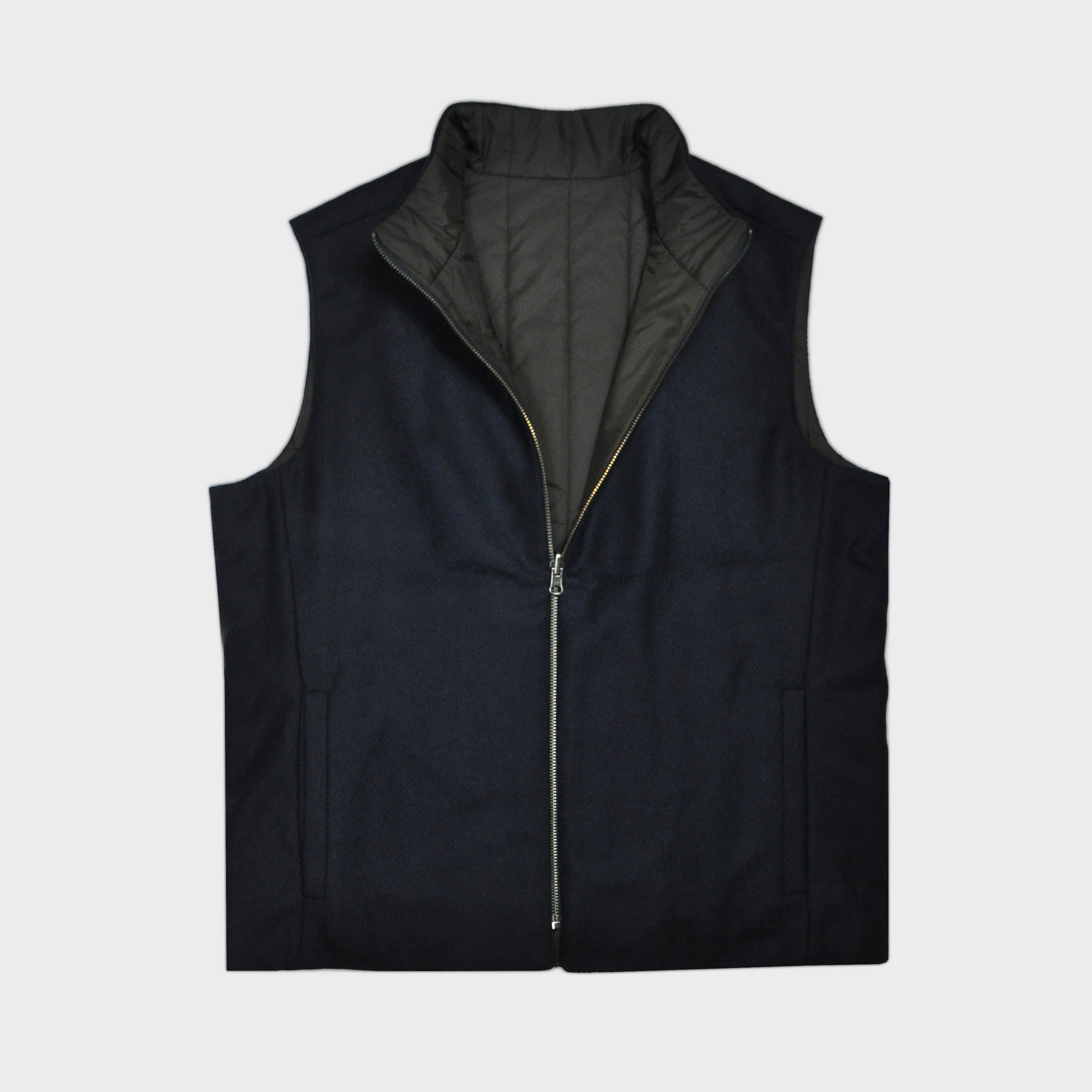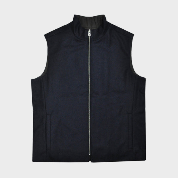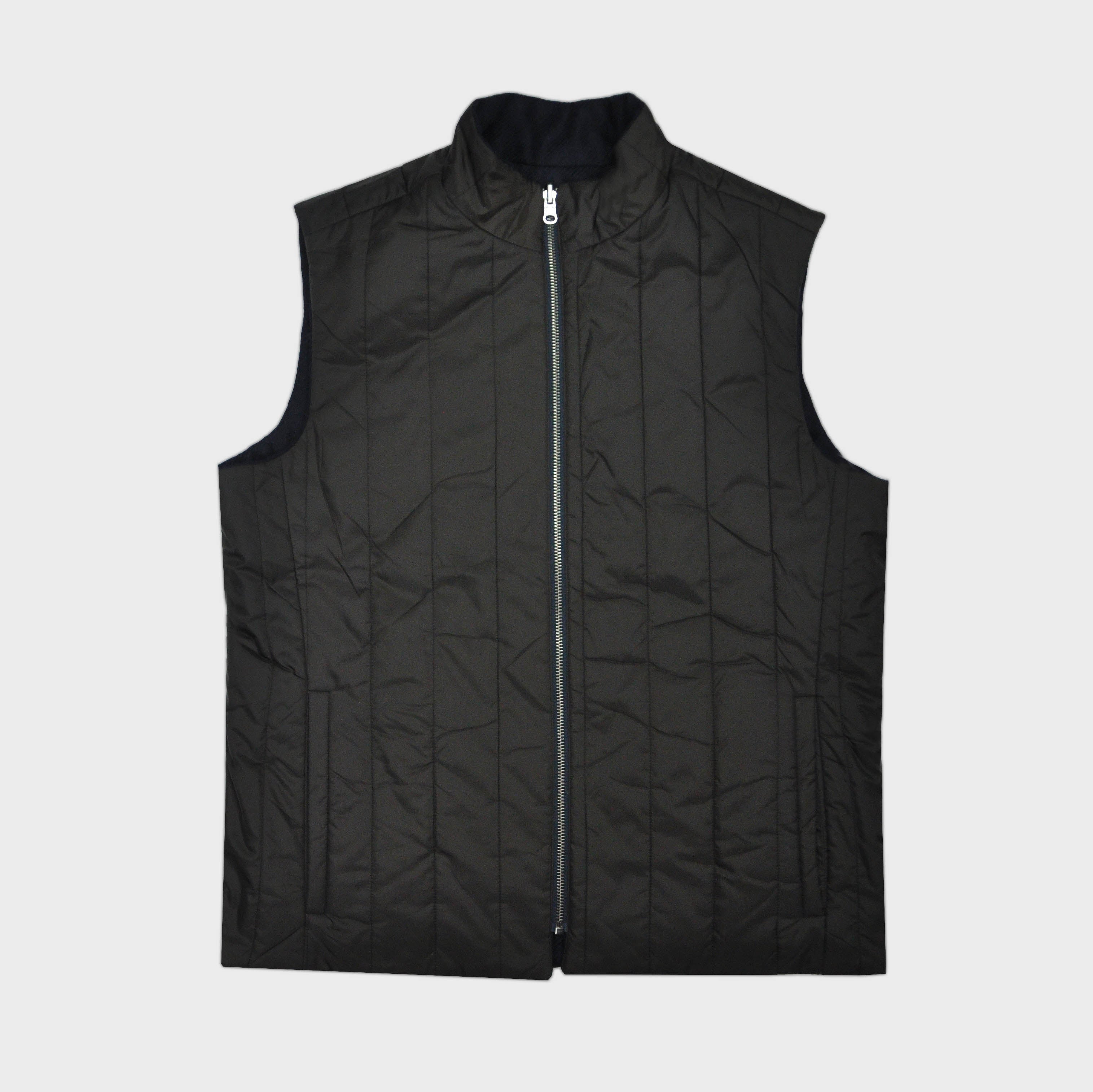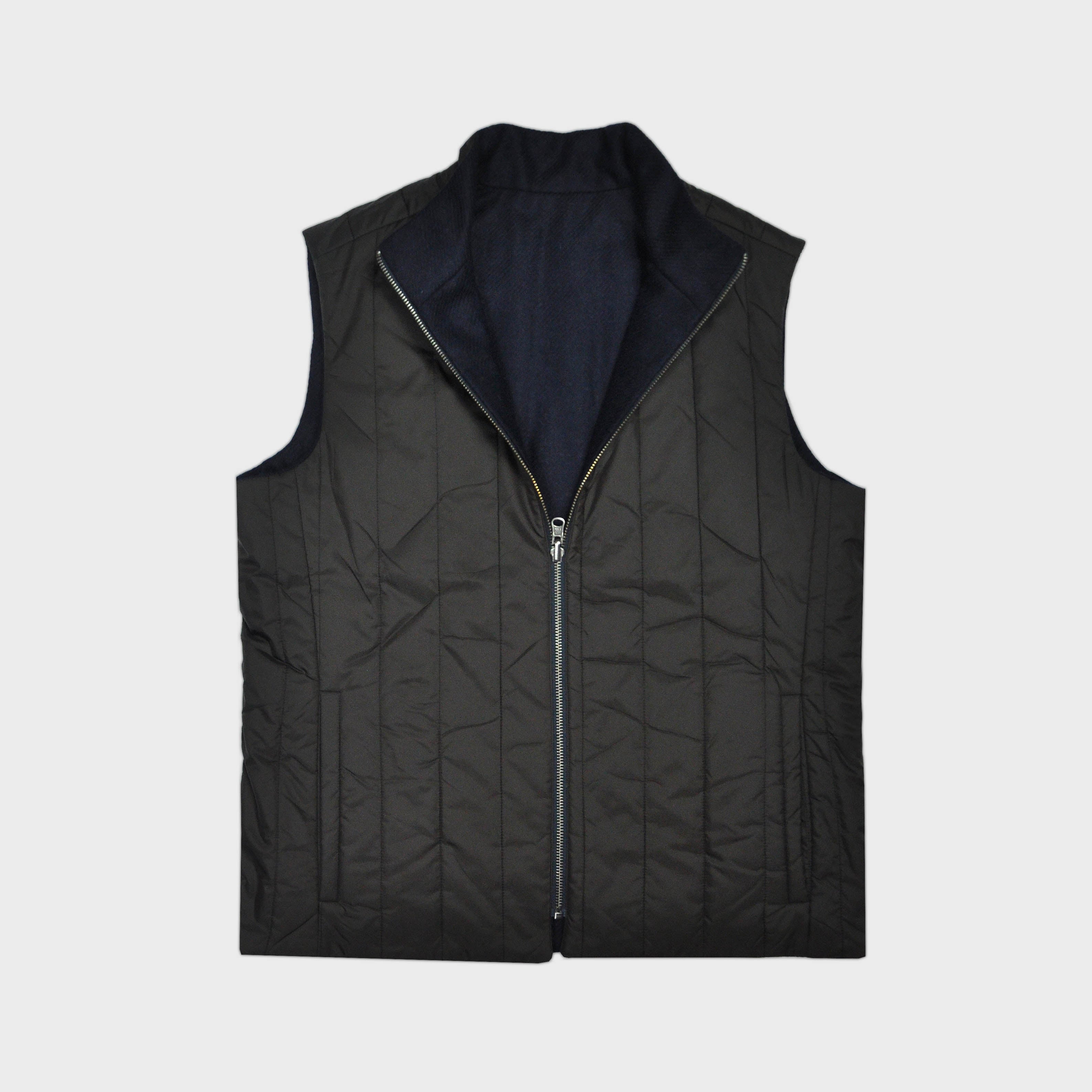 Reversible Wool & Puffer Gilet in Navy & Brown