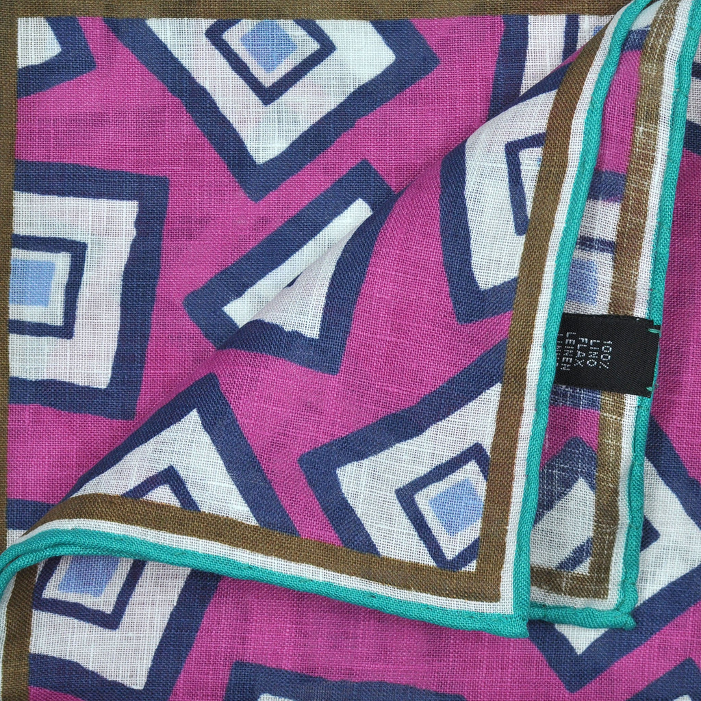 Paisley Linen Pocket Square in Pink, Lime & Brown