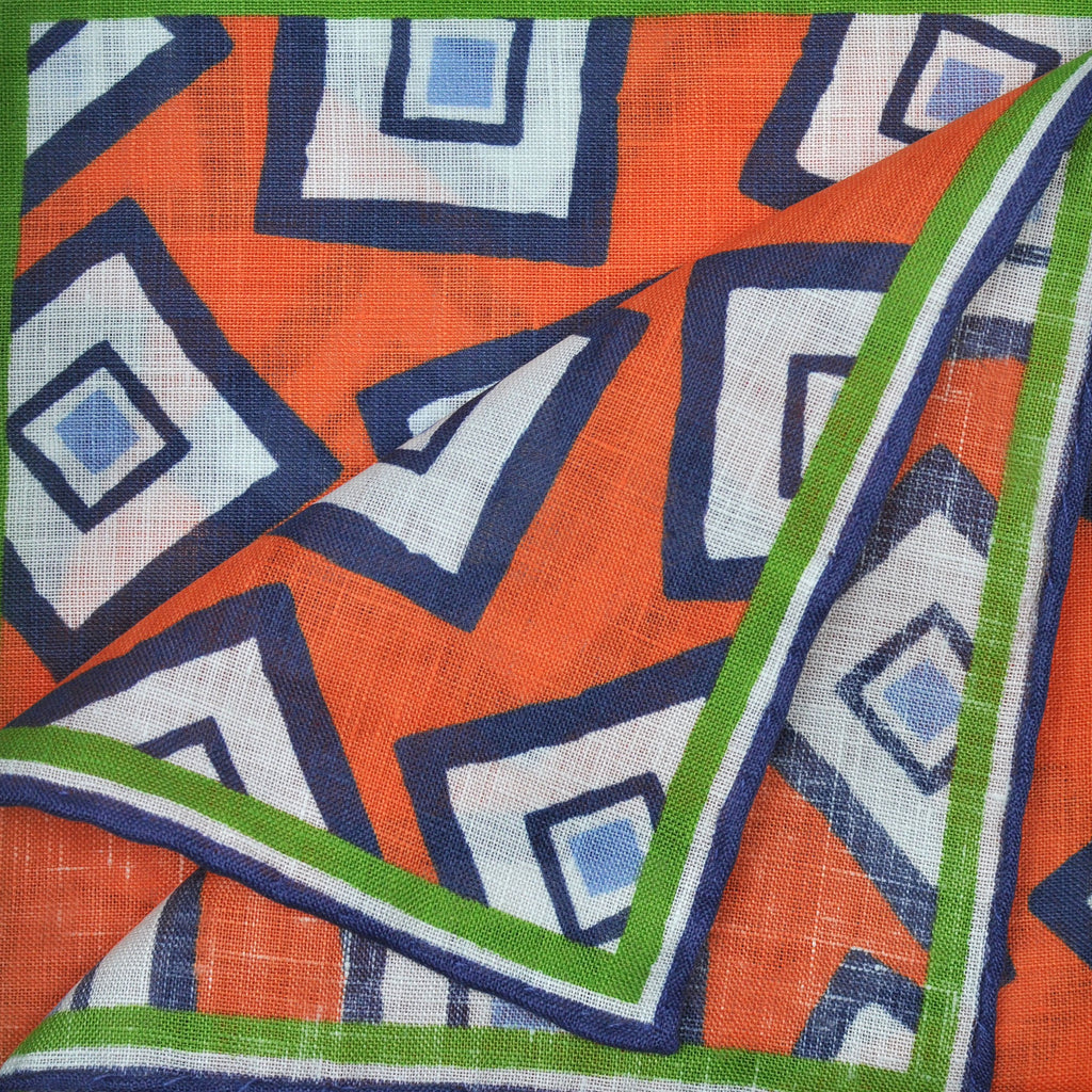 Hoops Linen Pocket Square in Green, Orange & Purple