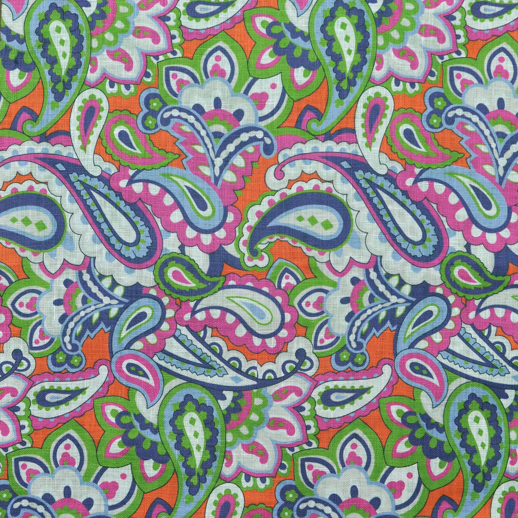 Paisley Linen Pocket Square in Orange, Lime & Yellow
