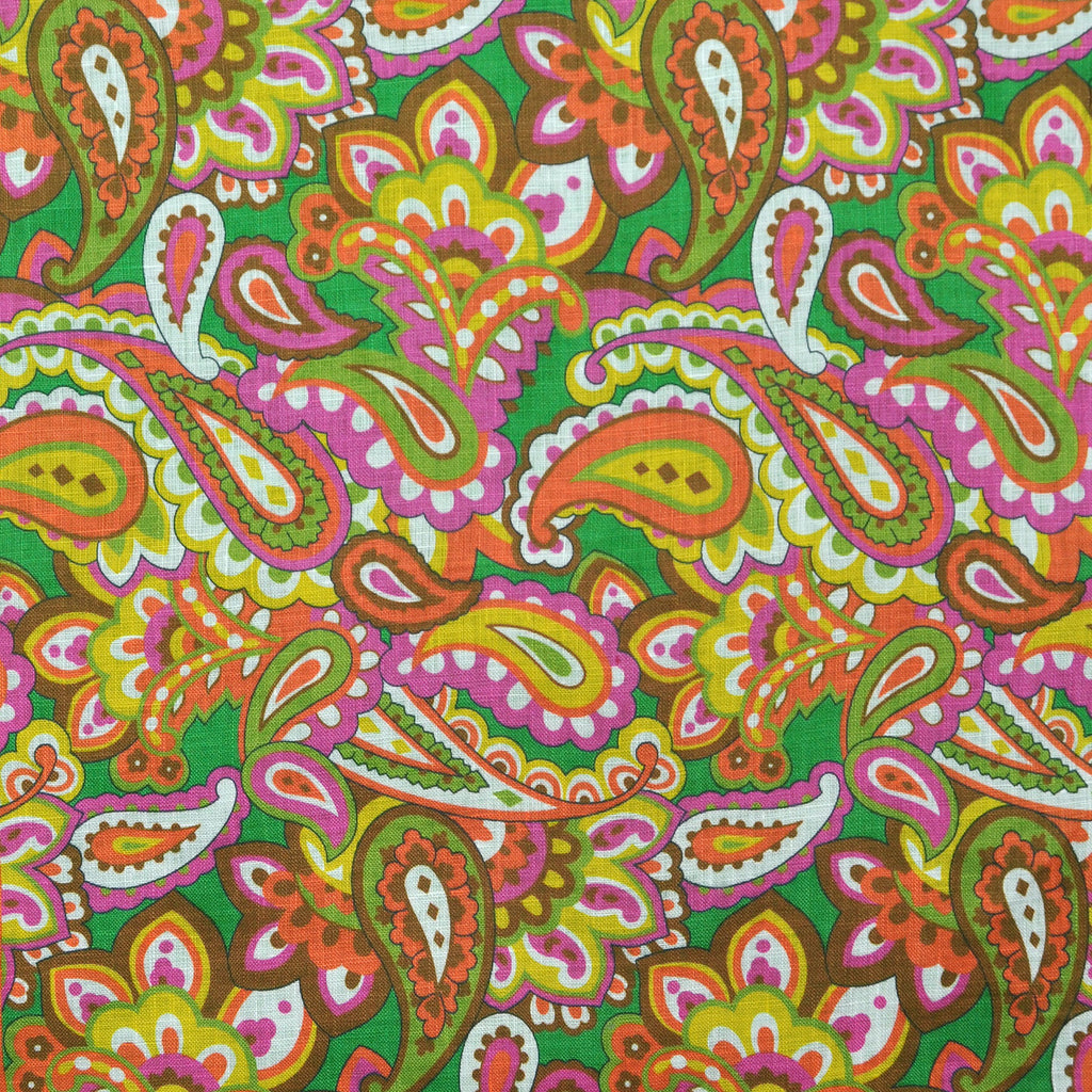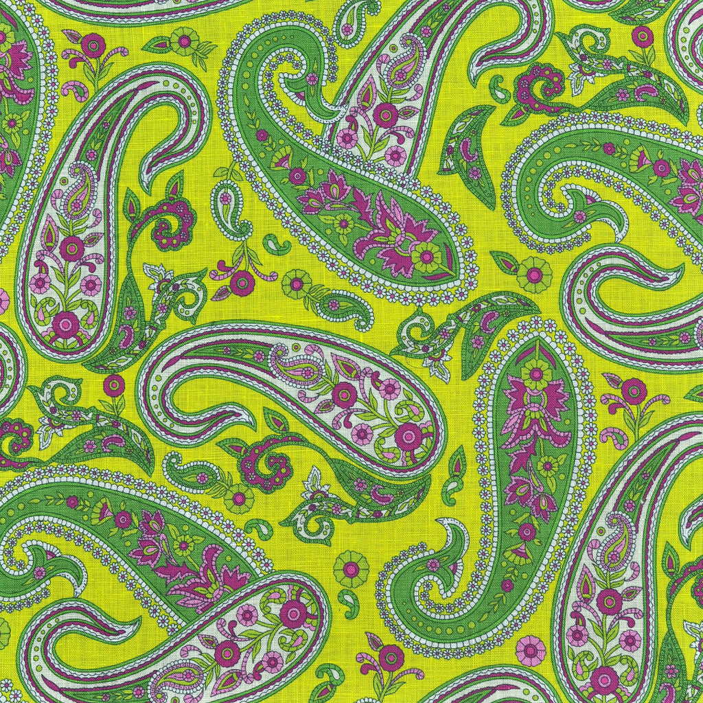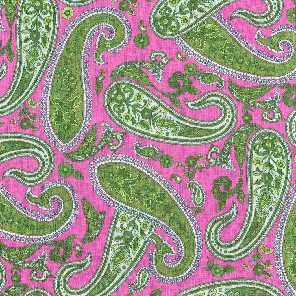 Paisley Linen Pocket Square in Lime, Pink & Brown