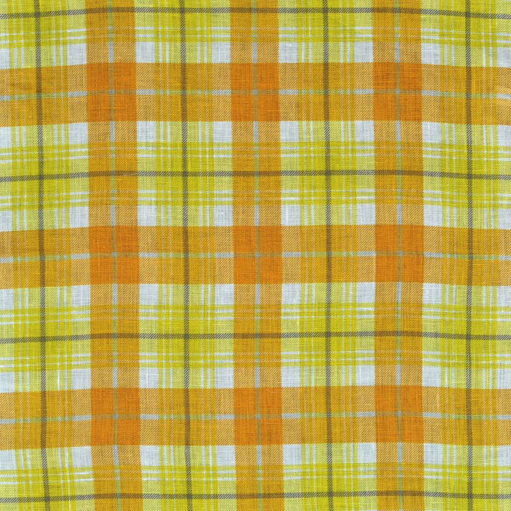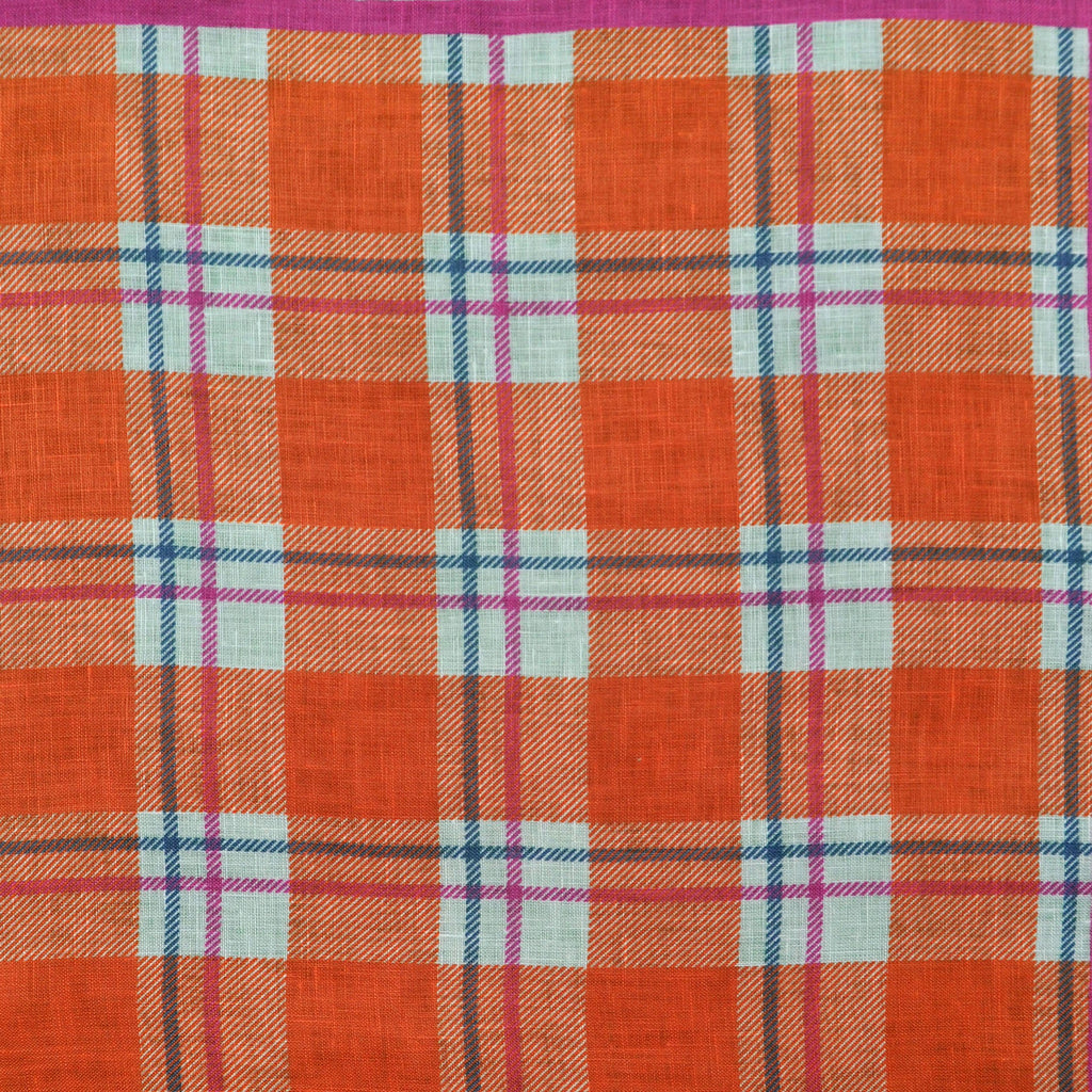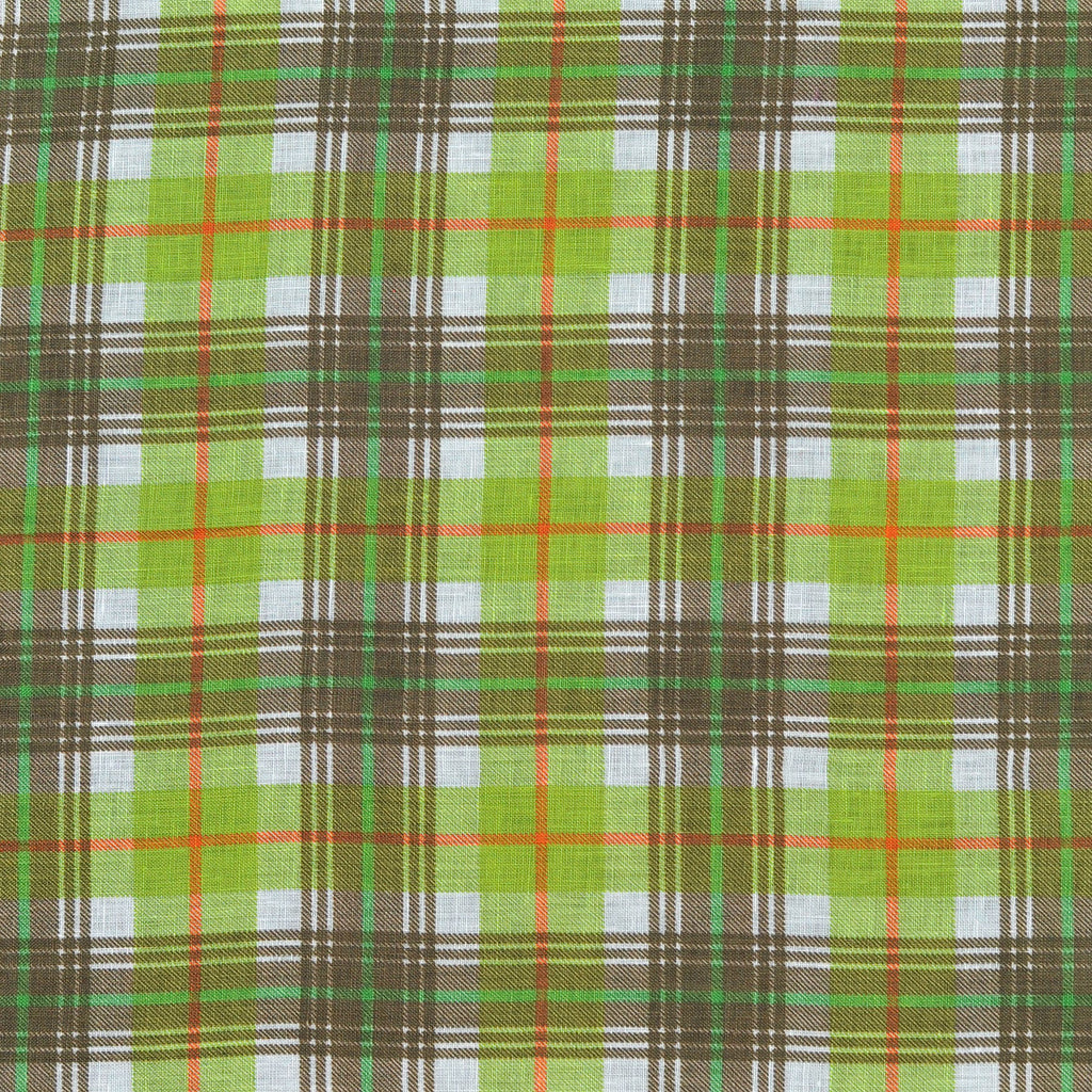 Plaid Linen Pocket Square in Lime, Orange & Brown