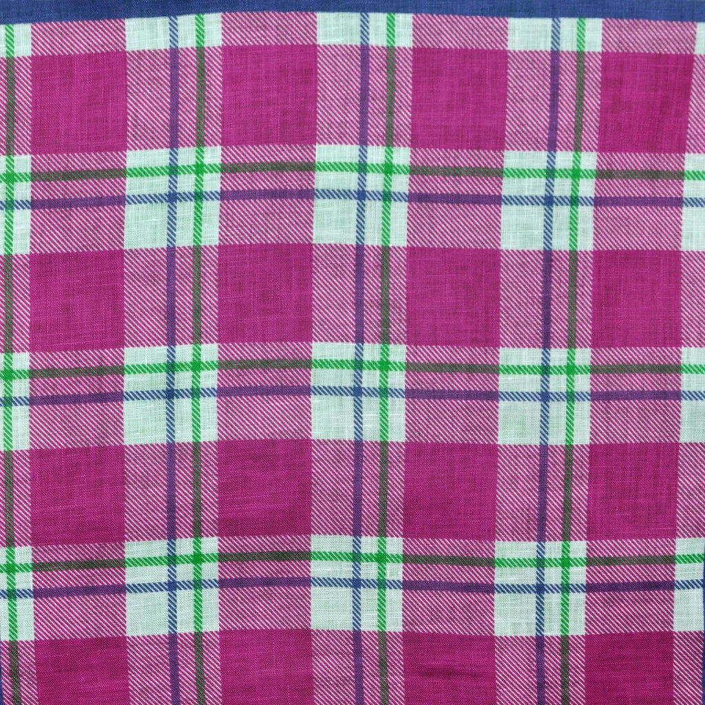 Plaid Linen Pocket Square in Green, Purple & Brown